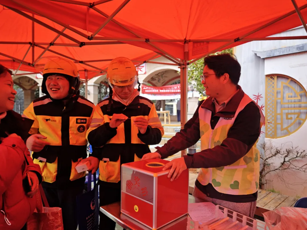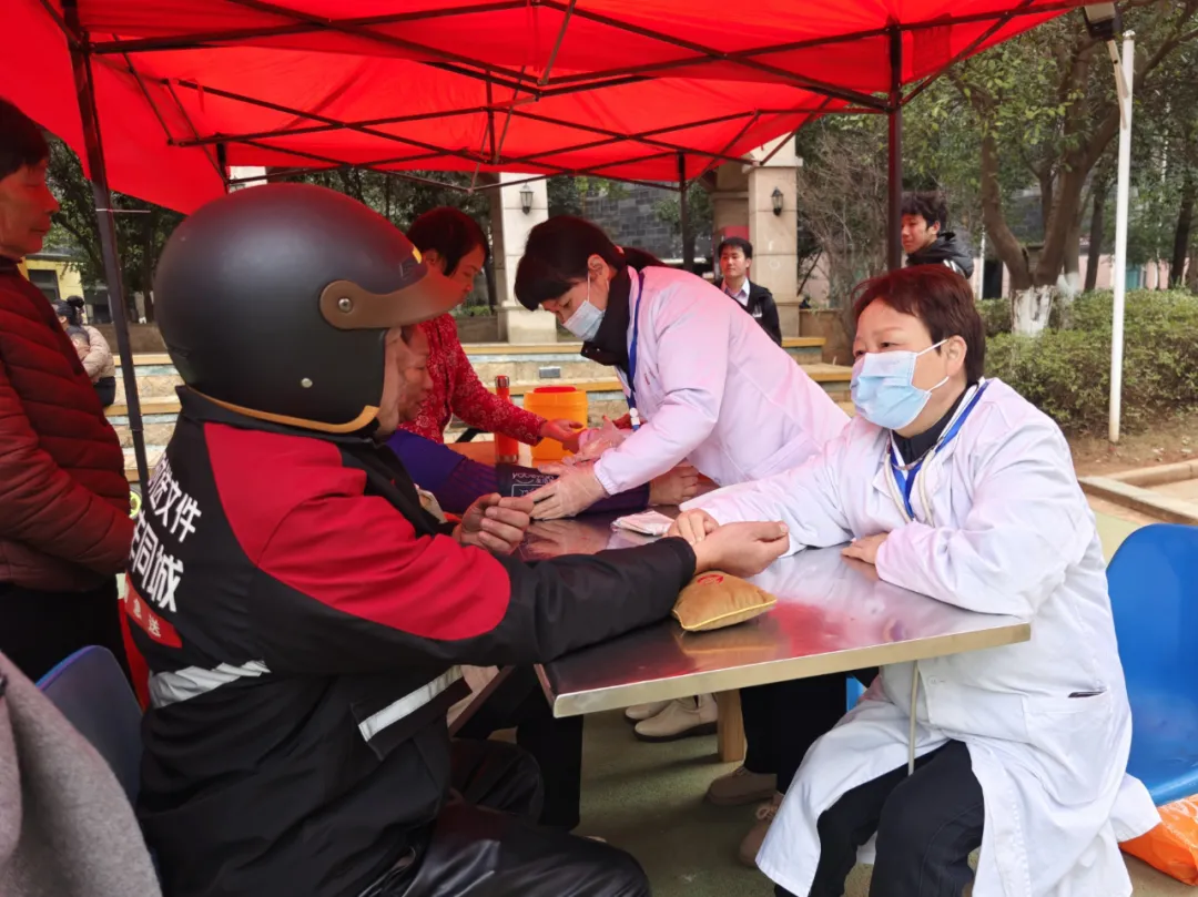 健康义诊送关爱。国医传承中医馆的管医生正耐心为外卖小哥测量血压、血糖。“我们平时送餐忙,饮食不规律,颈椎腰椎也常有不适,今天能免费咨询中医理疗,真是太好了!”一位刚测完血糖的骑手连连称赞。