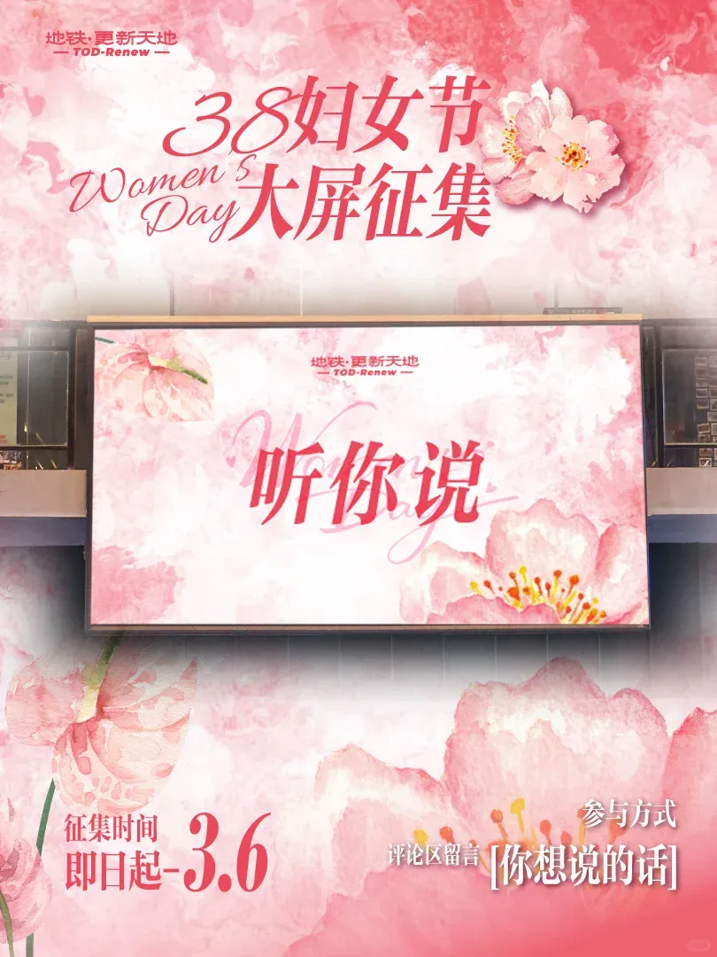 📚活动内容:在【地铁.更新天地】小红书账号指定帖子下参与妇女节话题评论,即有机会上屏,并获得下午茶奶茶券