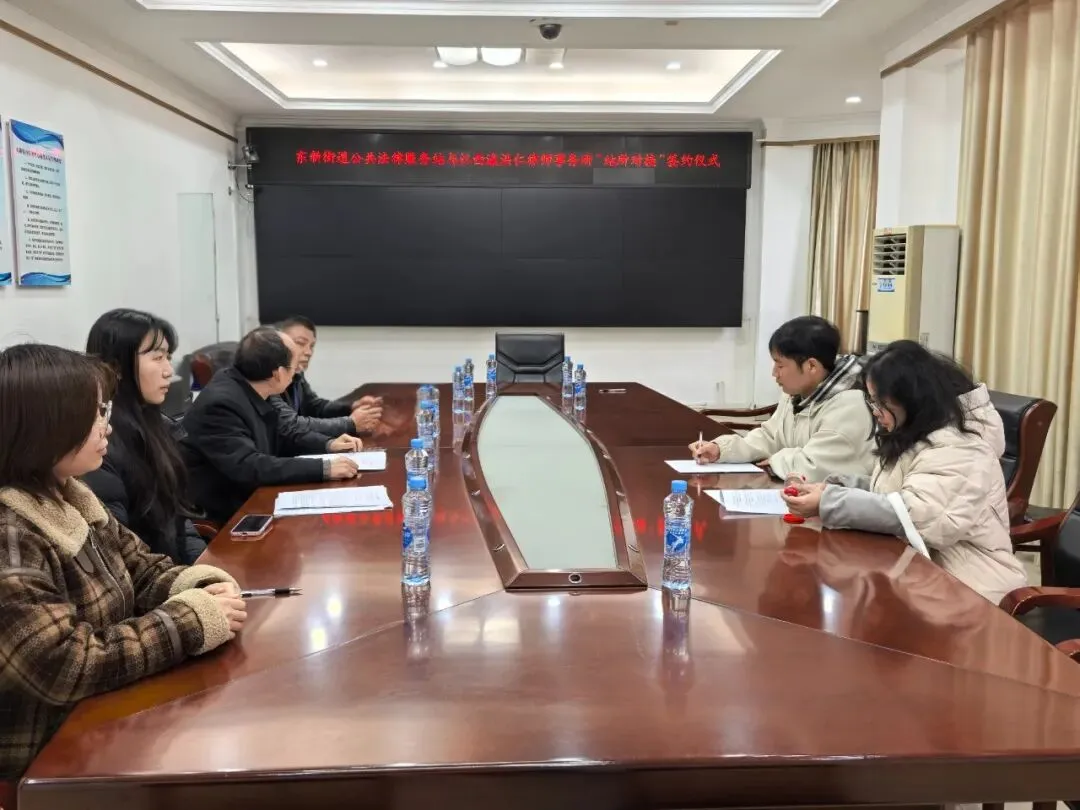 上午10时,在东新街道办事处一楼会议室,江西瀛洪仁律师事务所与东新司法所举行了简朴而隆重的签约仪式。双方代表共同签署了《司法所导入专业力量结对共建工作协议》,标志着“站所对接”机制正式落地。