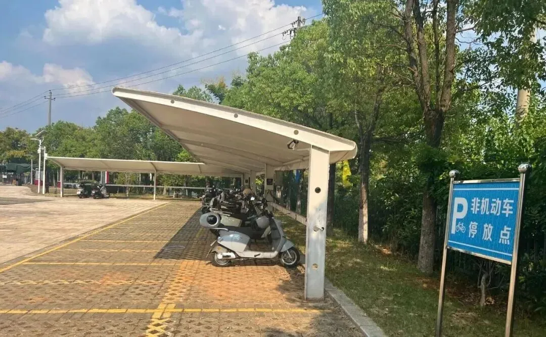 非机动车停放点:非机动车进入校园内,必须下车推行至指定的停放地点,严禁在院内骑行及乱停乱放。