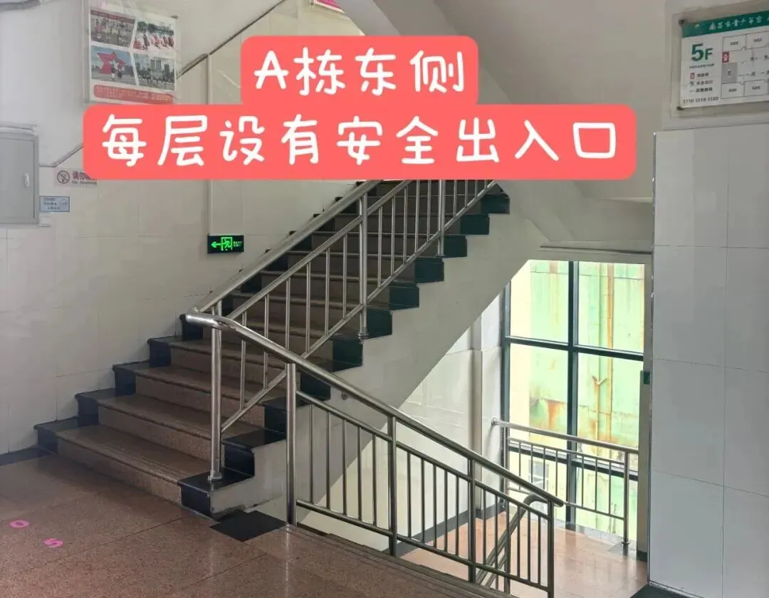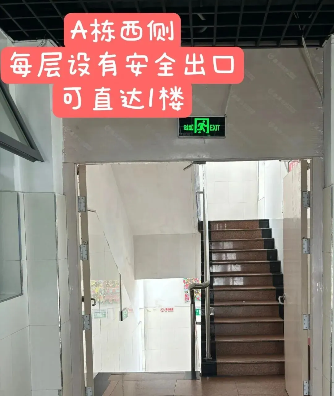 西侧楼梯为安全出口,只出不进,可下行直达一楼。