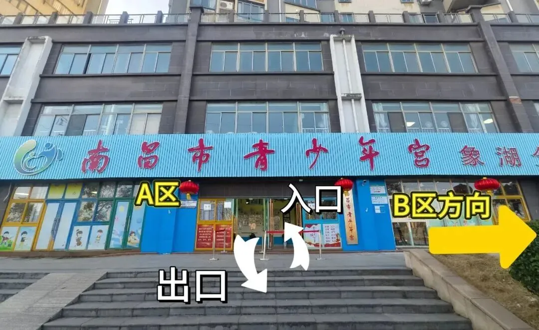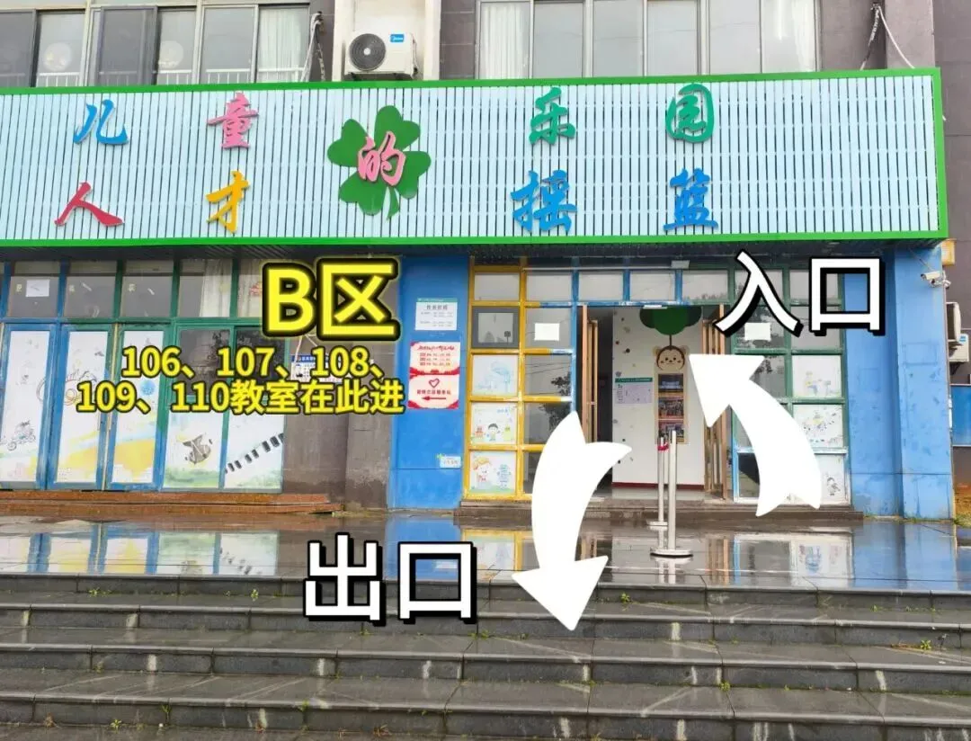 B区:106、107、108、109、110教室从此进。