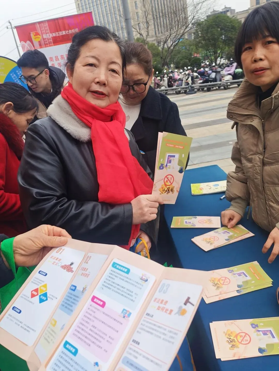 座谈会结束后,志愿服务活动在南昌高新区吾悦广场正式启动。南昌市小额贷款公司协会在爱心服务区域设立了专门的服务点位,与其他参与协会、商会一道,面向广大社区居民提供便民咨询。协会工作人员结合自身行业特性,围绕小额信贷、普惠金融政策、金融风险防范、诚信体系建设等内容,为前来咨询的群众提供了清晰、专业的解答和建议,帮助大家更好地理解相关金融知识,规划家庭财务,识别并规避潜在金融风险,将金融服务精准对接至基层民生领域,受到了现场群众的欢迎。