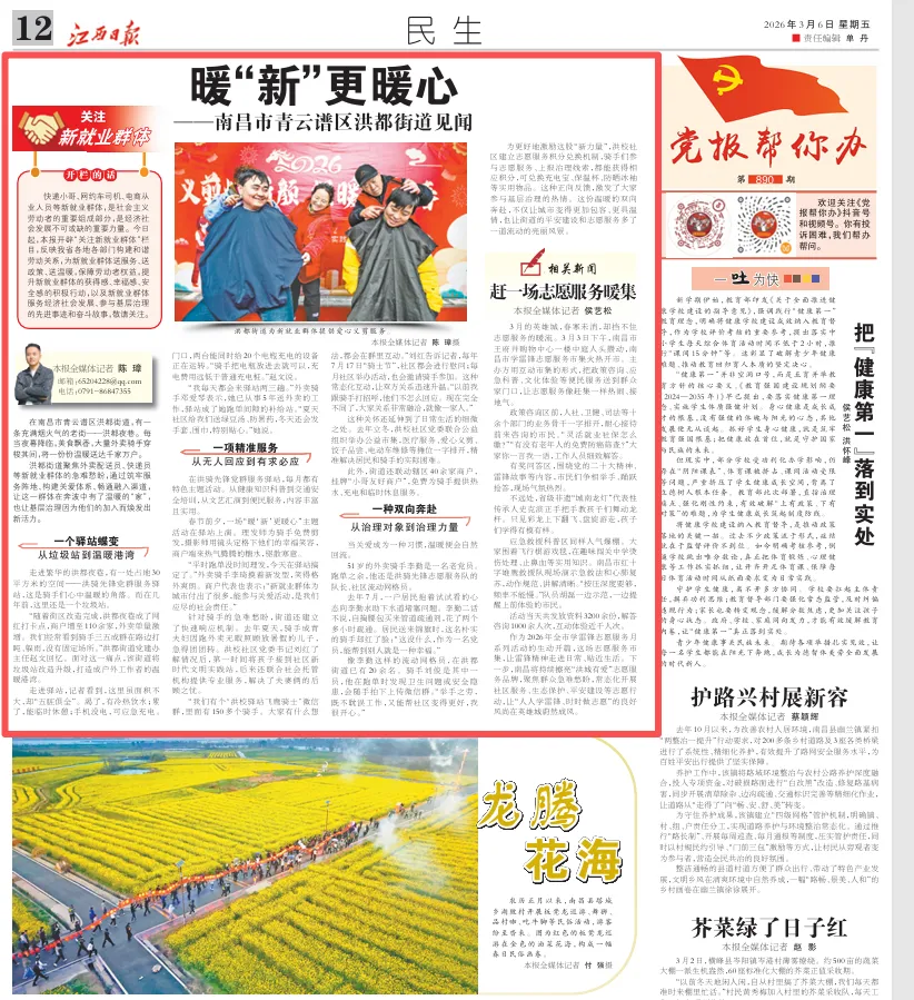 洪都街道聚焦外卖配送员、快递员等新就业群体的急难愁盼,通过筑牢服务阵地、构建关爱体系、畅通融入渠道,让这一群体在奔波中有了温暖的“家”,也让基层治理因为他们的加入而焕发出新活力。