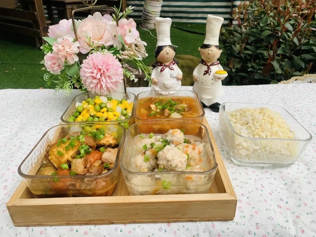 主食:白米饭(大米托小班50g 、中班55g、大班60g)