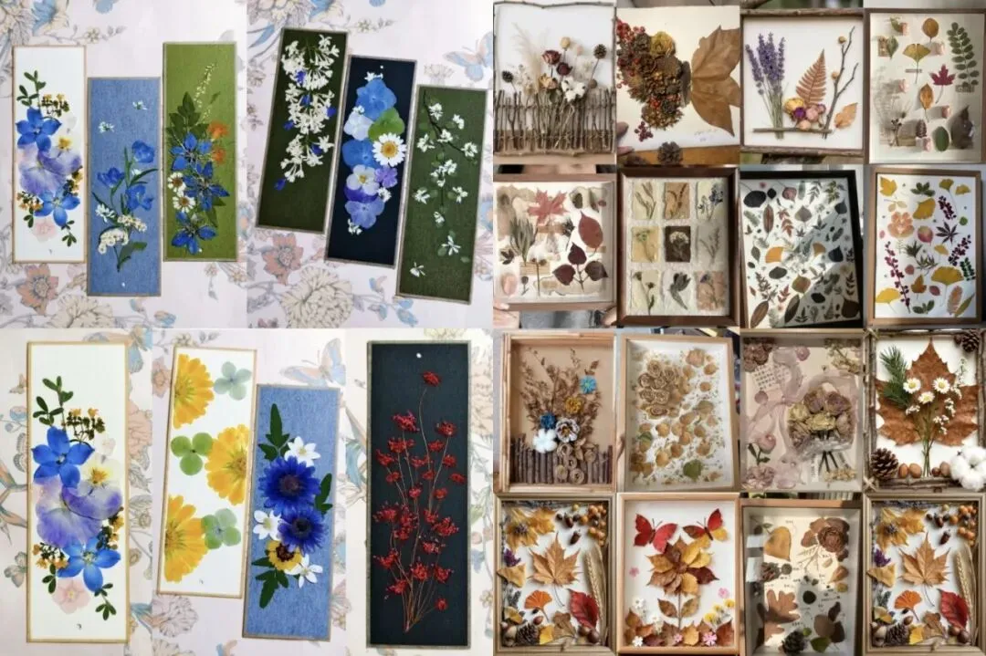 用干花、树叶等素材自由创作,制作专属压花书签或迷你植物相框,把春日温柔藏进手作里。