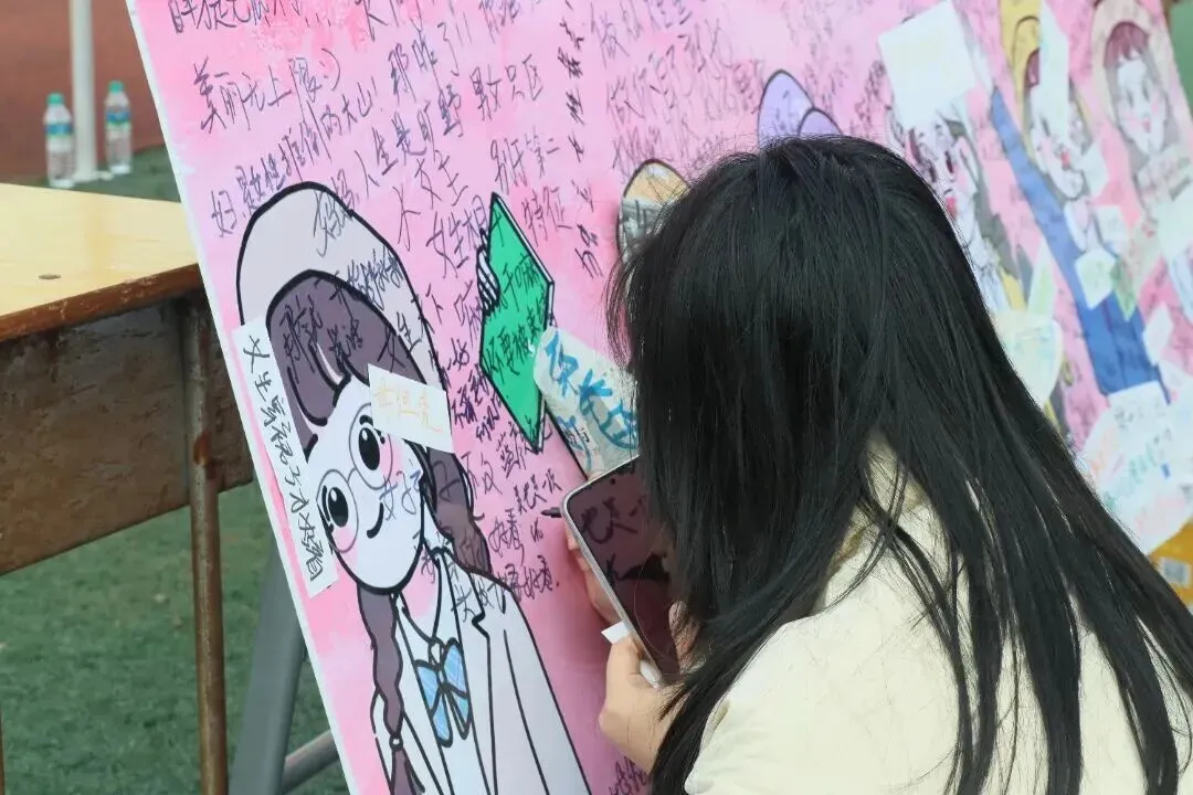 现场铺设数米长卷,师生以毛笔书写女性主题诗词、绘制简笔人物像,也可书写妇女节专属祝福标语共同完成群体创作。(集章活动)