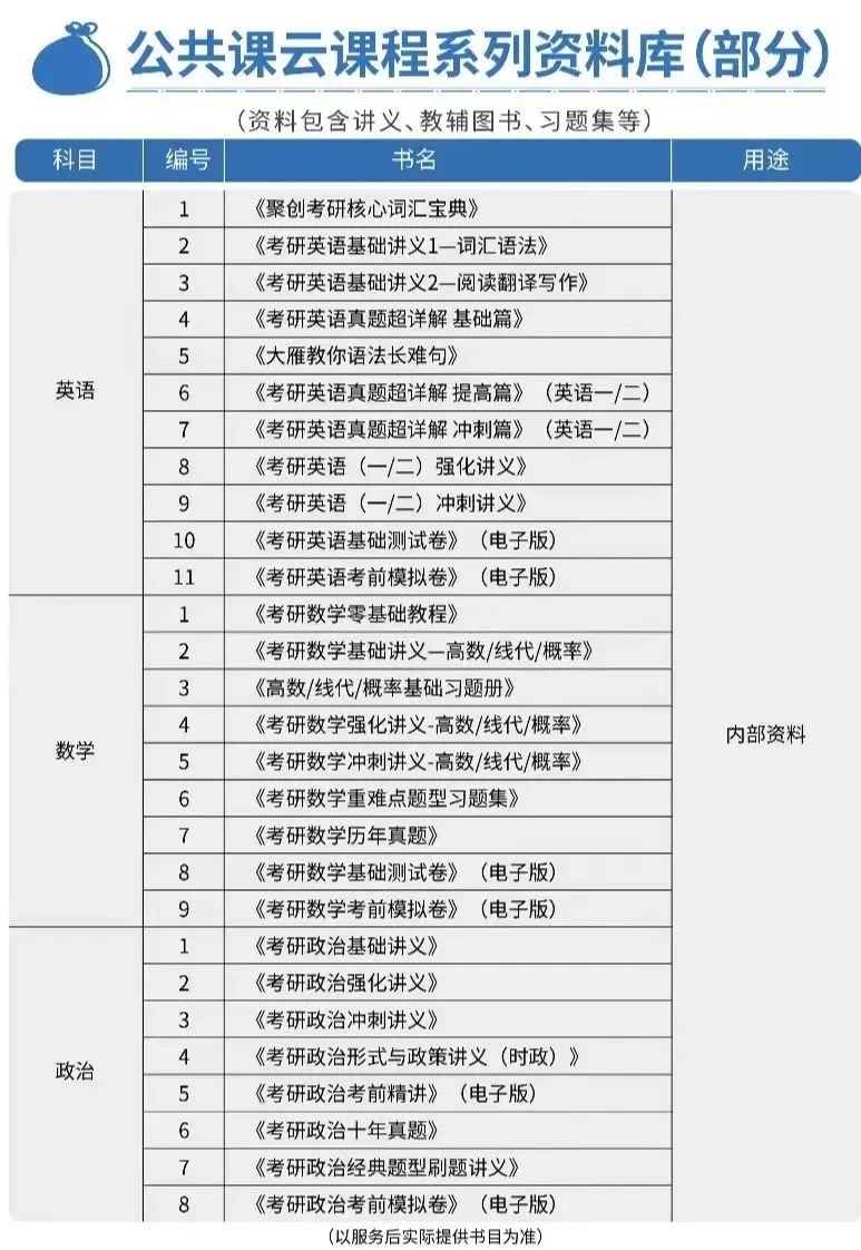 公共课:聚创考研资深教师团队授课,每周2-3次直播课程,干货满满;