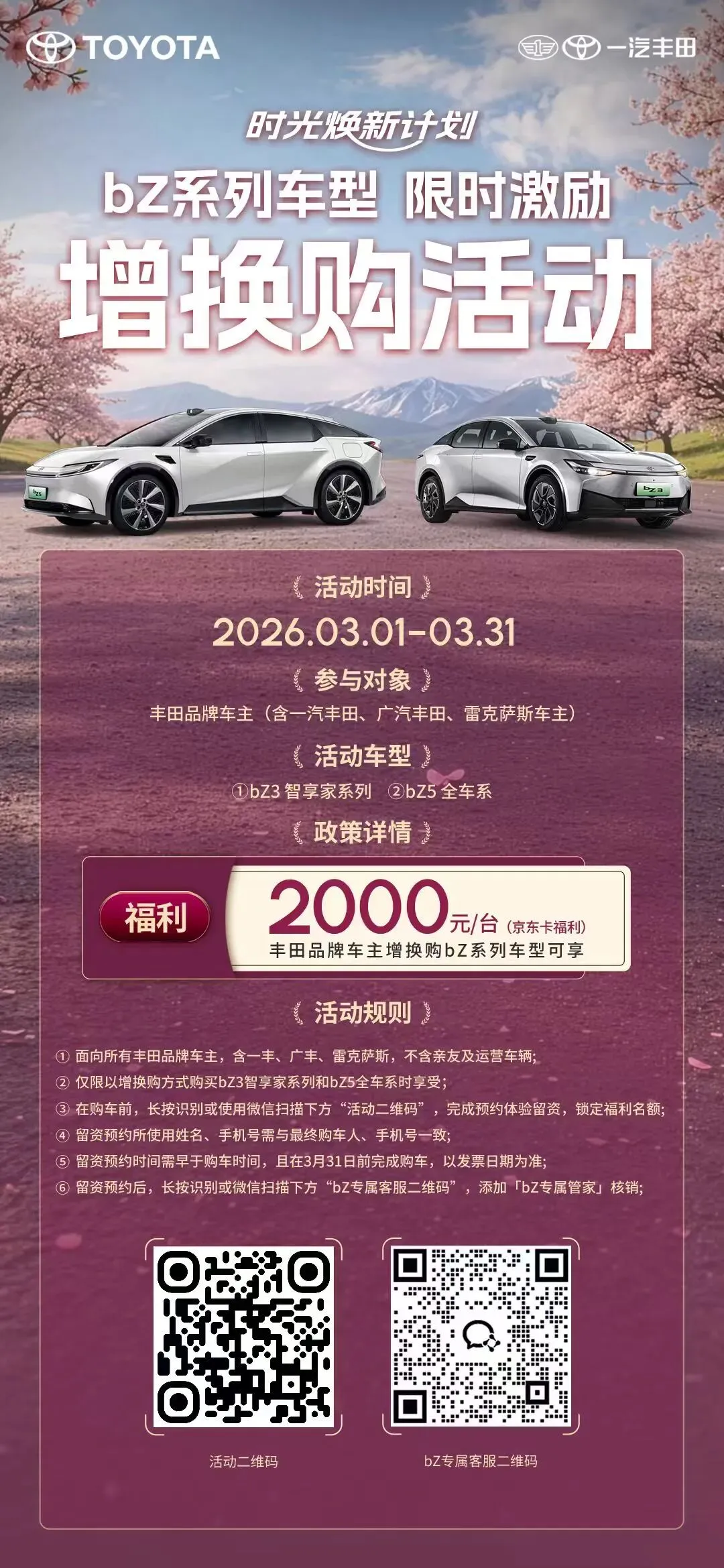 >【南昌同驰-bZ换购】限时2000元!bZ车型增换购福利来袭