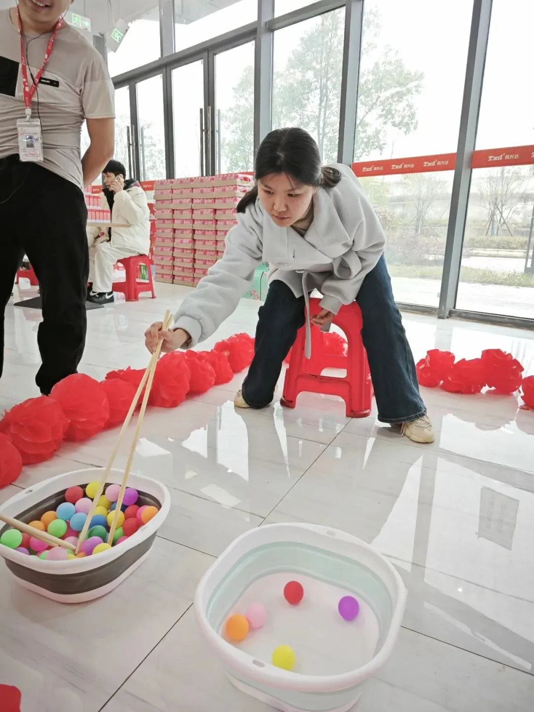 在好运“汤圆”游戏区,参与者手持长筷,需将光滑的乒乓球(象征“汤圆”)稳稳夹起并放入碗中。这一环节看似简单,实则考验手眼协调与耐心。