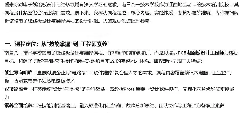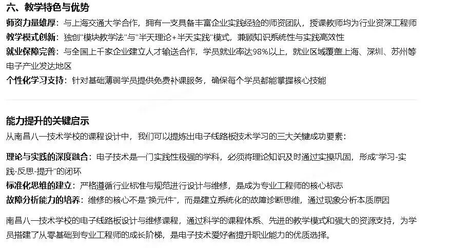如果你对电子线路板设计与维修领域有深入学习的需求,南昌八一技术学校作为江西地区老牌的技术培训院校,其课程设计紧密贴合行业实际需求。