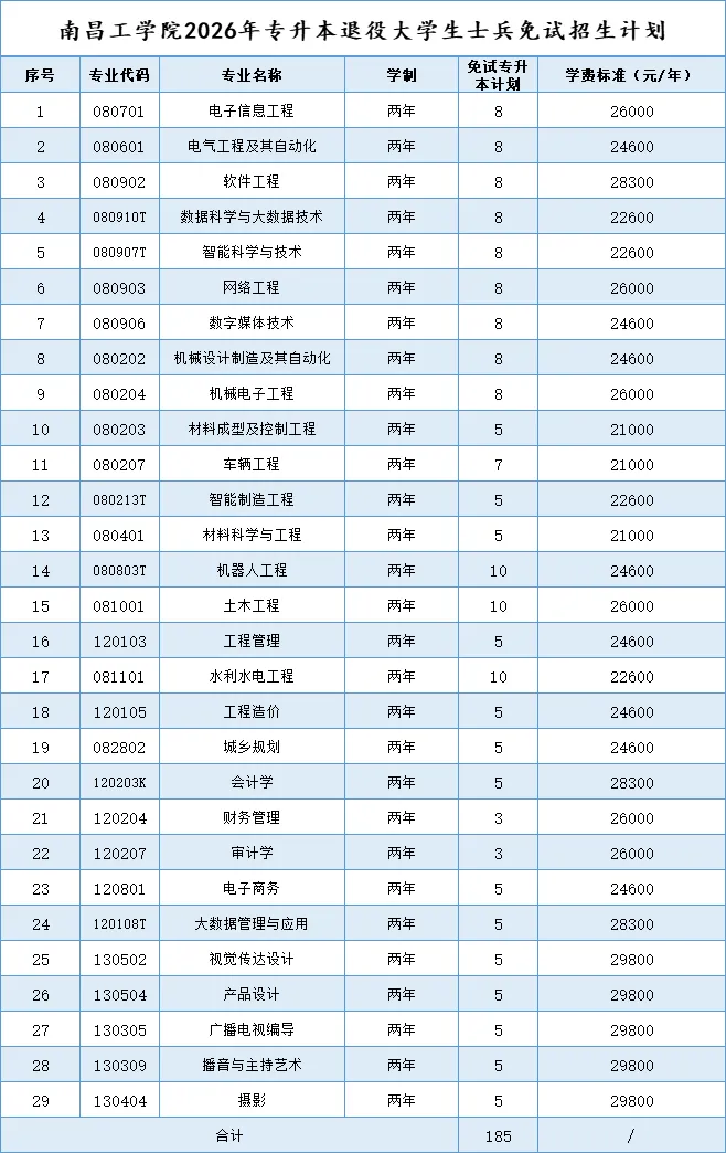 4.综合评价:详见附件《南昌工学院2026年退役大学生士兵专升本免试招生综合评价计分办法》。