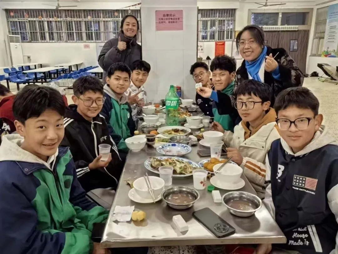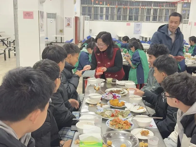 傍晚五点,除夕团圆餐开席。南昌十中党委副书记、校长王欣芳,党委委员、副校长饶日亮,副校长叶青,执行副校长王春丽和西藏班老师早早来到食堂,陪留校的孩子们一起吃年夜饭。桌上已摆好热气腾腾的饭菜,大家围坐在一起,老师和同学们互相祝福,欢声笑语间,孩子们脸上漾开了笑容。学校还为每位同学准备了零食礼包和压岁红包,让这个远离家乡的除夕夜,同样充满家的温暖。