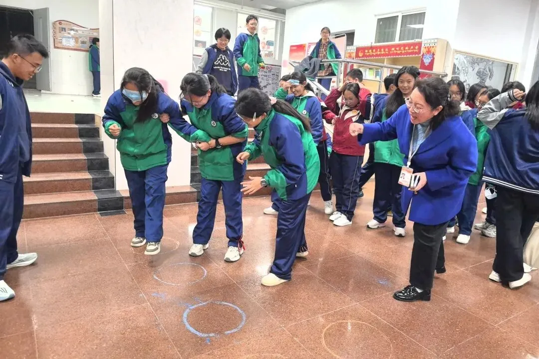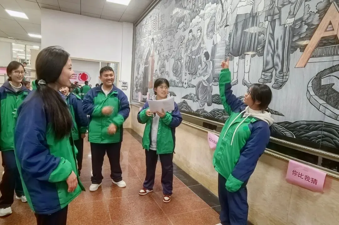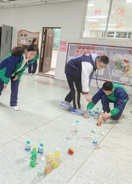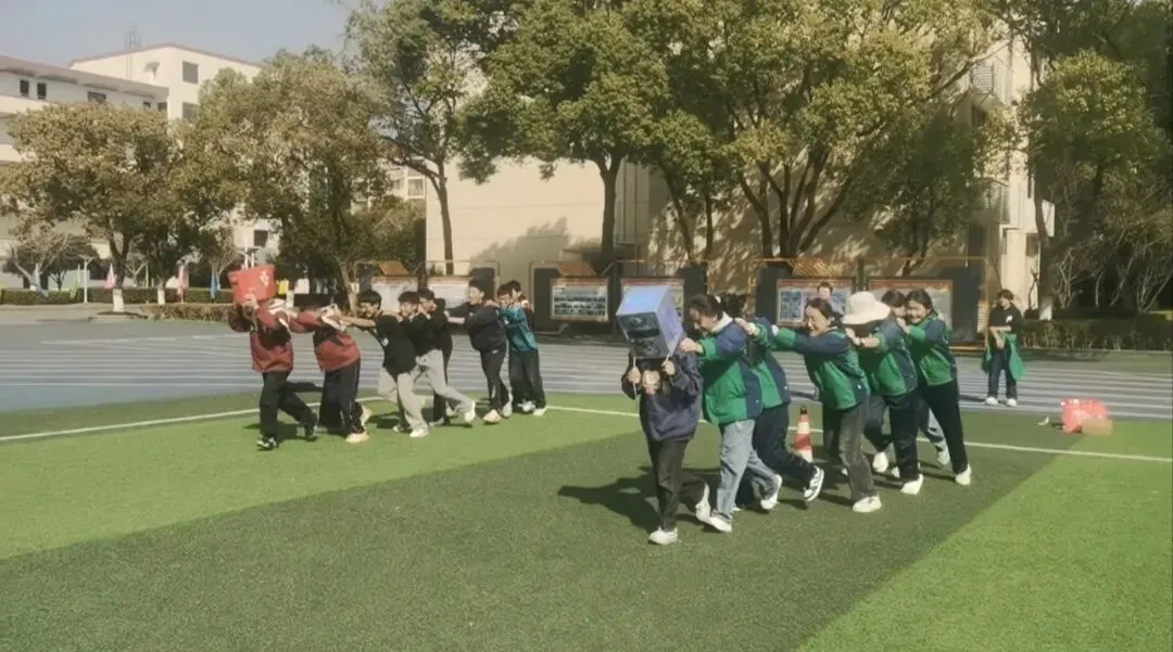正月初六下午,天气晴好。同学们在操场上开展趣味游戏,分组进行接力、跳绳等比赛。大家互相加油,操场上加油声、欢笑声此起彼伏。