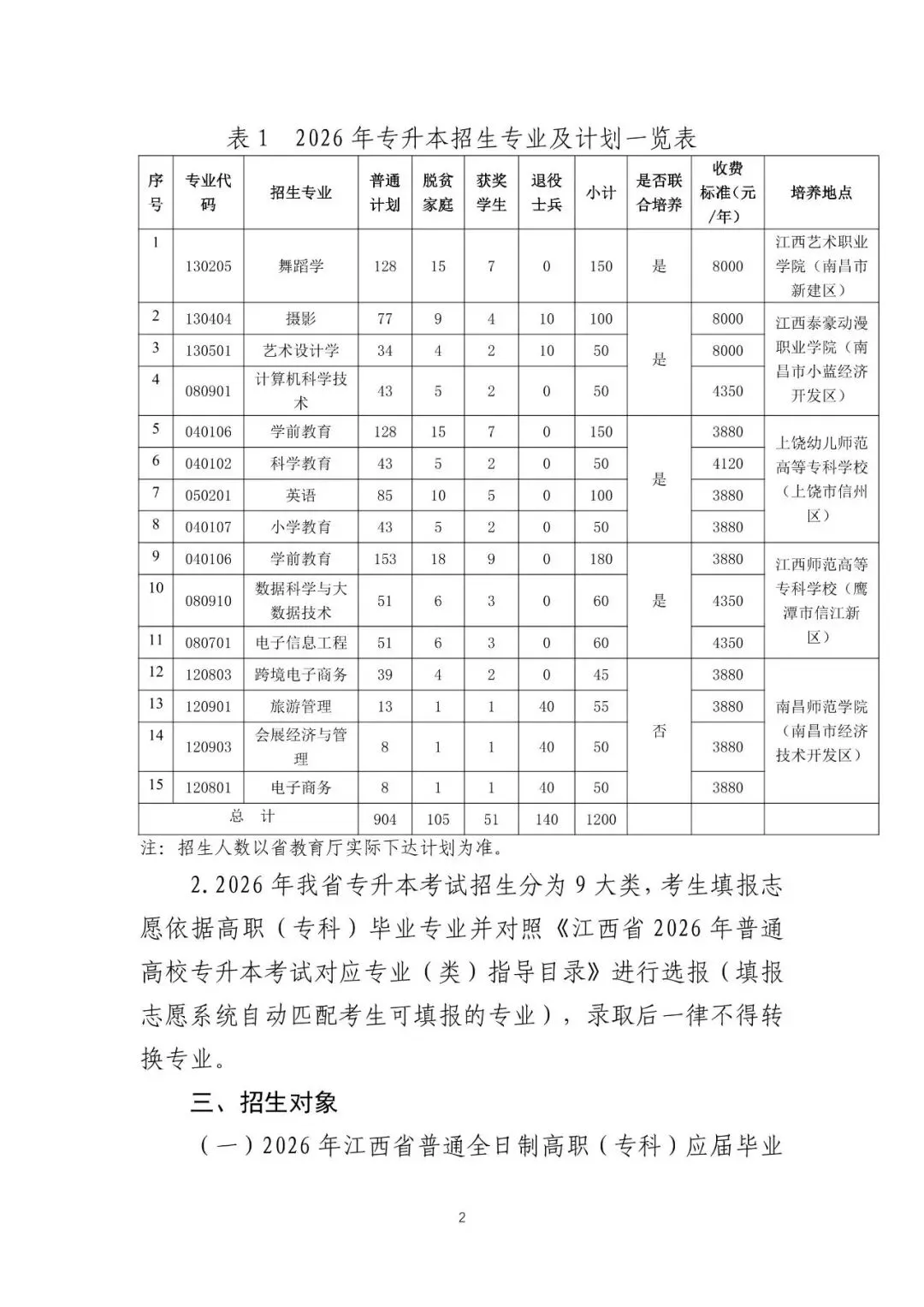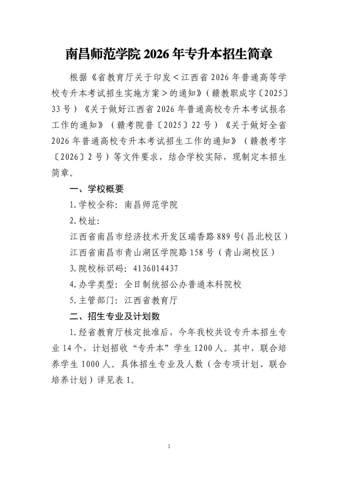>招1200人!南昌师范学院2026年专升本招生简章