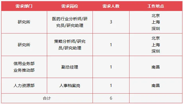 因发展需要,现面向社会公开招聘6人,相关信息如下: