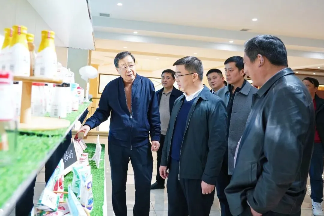 江西阳光乳业成立于2008年,是我省规模最大的现代化乳品企业,涵盖牧草种植、奶牛养殖、乳品加工、新品研发、市场营销及物流配送等多种产业,是农业产业化国家重点龙头企业。黄为民一行参观了企业展厅和生产车间,详细了解了江西阳光乳业发展历程、生产经营、技术创新及市场布局等情况,对企业多年来扎根奉新发展奶牛养殖表示感谢,对企业取得的成就给予高度评价。