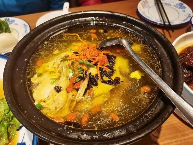 如果只选一道菜,我会点石耳炖土鸡。做法不复杂,石耳先泡发去沙,土鸡切块焯水,和姜片一起小火慢炖,再放石耳和一点盐,最后撒葱。关键不是调料多,而是火候稳。汤色微黄,入口先是鸡香,后面是石耳那点滑和脆,喝完胃里暖,整个人都松下来。