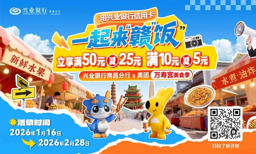 兴业银行南昌分行将坚守金融为民初心,在更多热门商圈、文旅打卡点复制推广此类场景化促消费模式。持续优化消费信贷、商户收单、支付优惠等一揽子金融服务,深化与本地生活平台及文旅商户的合作,不断丰富“金融+”生态内涵,为提振消费市场、繁荣地方经济贡献更多兴业力量,让金融“活水”更好滋养城市“烟火气”。