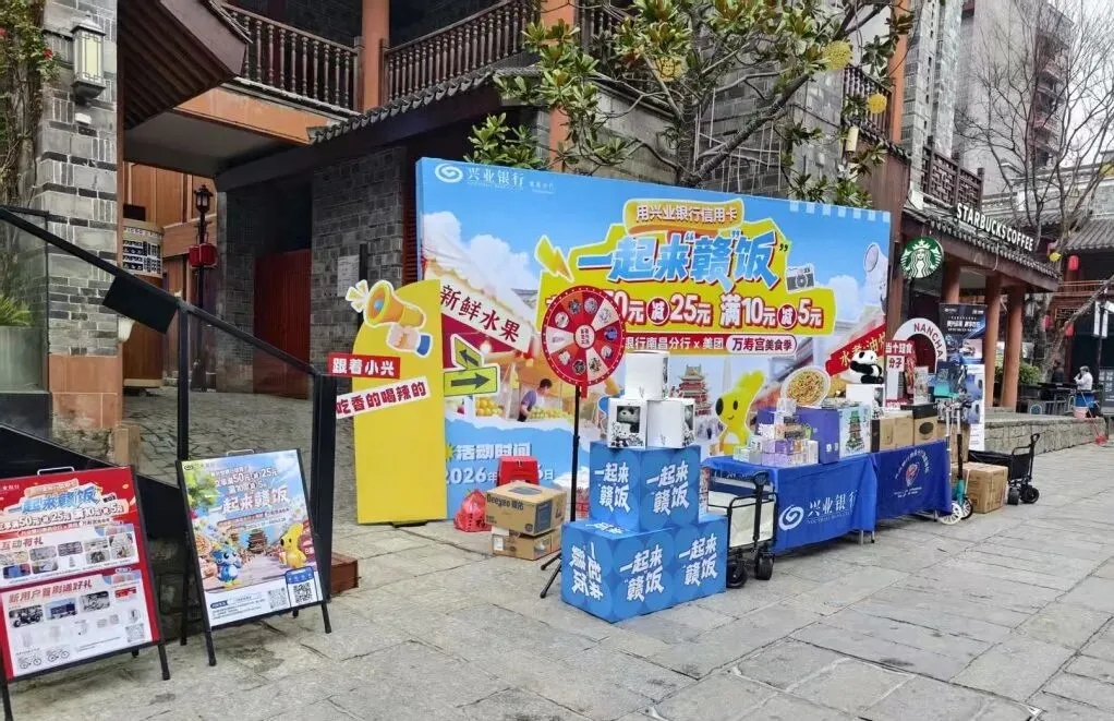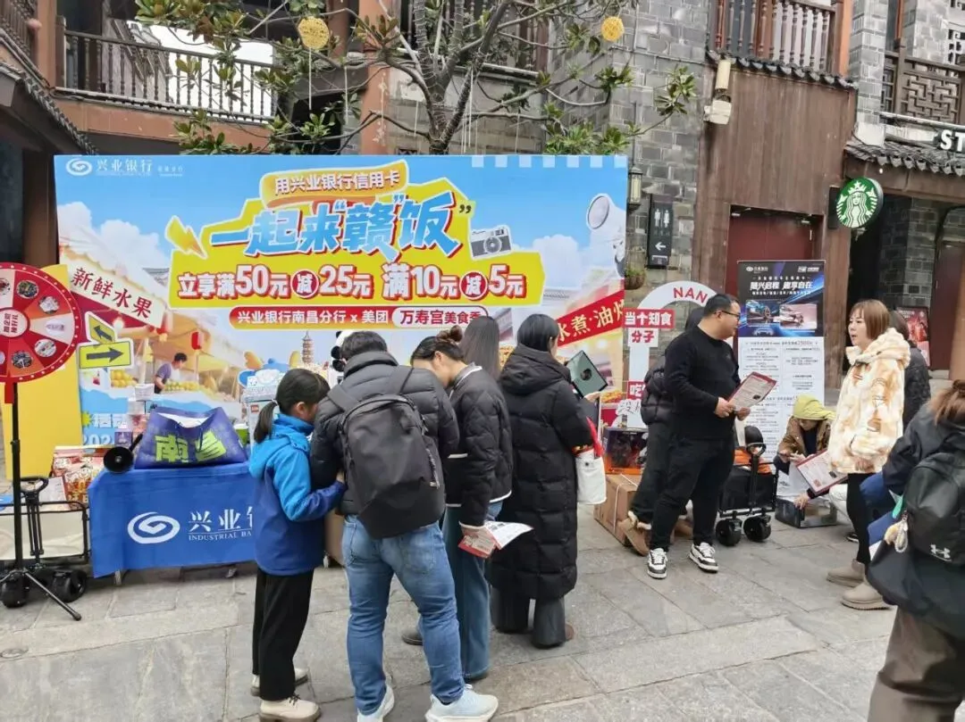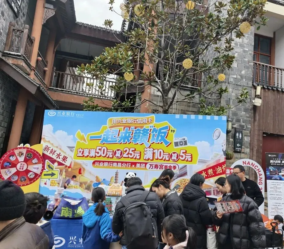 兴业银行南昌分行敏锐捕捉到这份“热气”,主动将金融服务嵌入街区消费场景。依托总行“美团折上折”品牌资源,我们带着满满的诚意来了——不是简单的产品推销,而是要做大家身边的“消费好搭档”,让金融服务更有温度、更接地气!