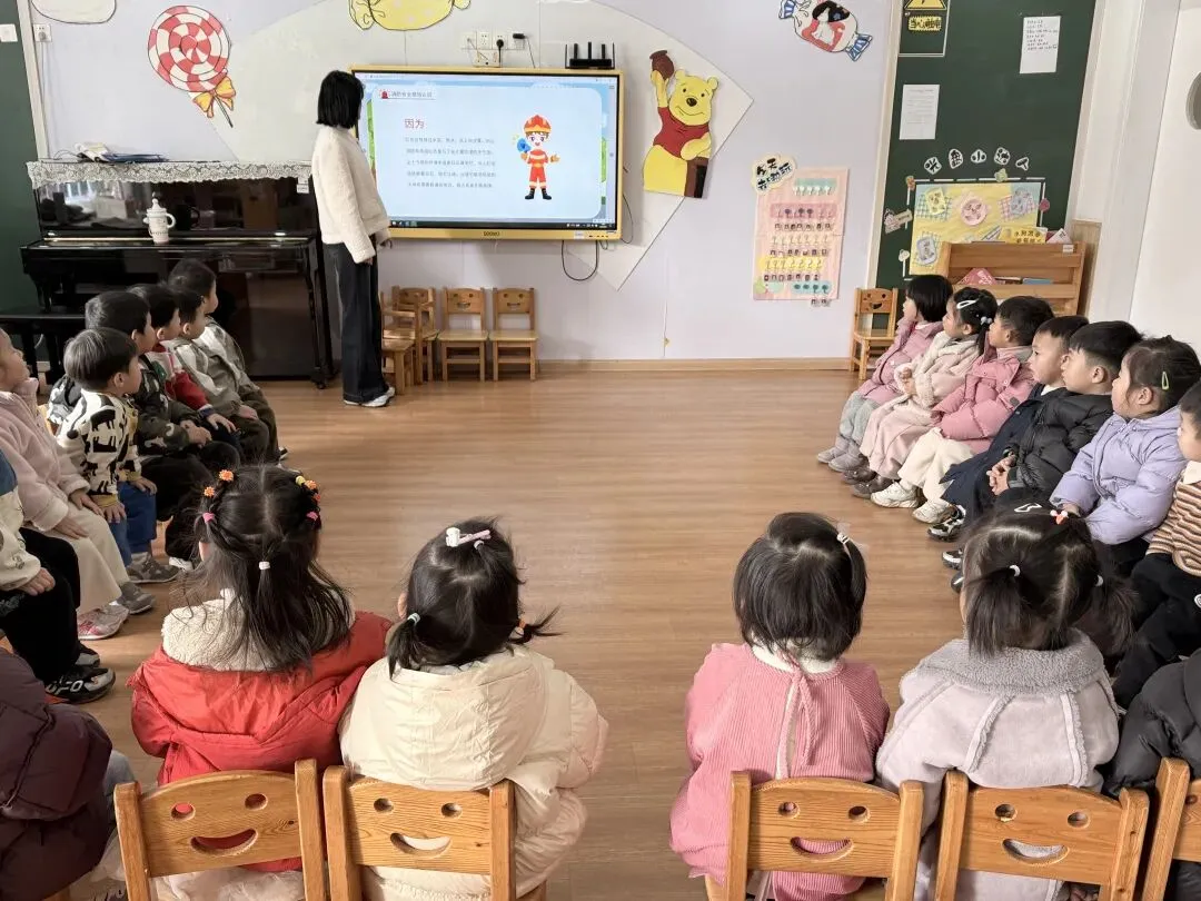 演练后,各班级老师给孩子们讲解了关于消防安全主题的教育活动,以PPT、图片、视频等容易理解的方式对幼儿进行相关的安全教育,将安全教育渗透在幼儿一日生活中,帮助幼儿掌握基本的自我防护意识,提高幼儿逃生技能。