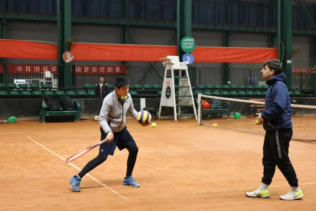“拍面关一下,对!”阿根廷教练正给12岁的学员,不厌其烦地纠正握拍、脚步、随挥。青少年训练地基要稳,动作必须抠到位。