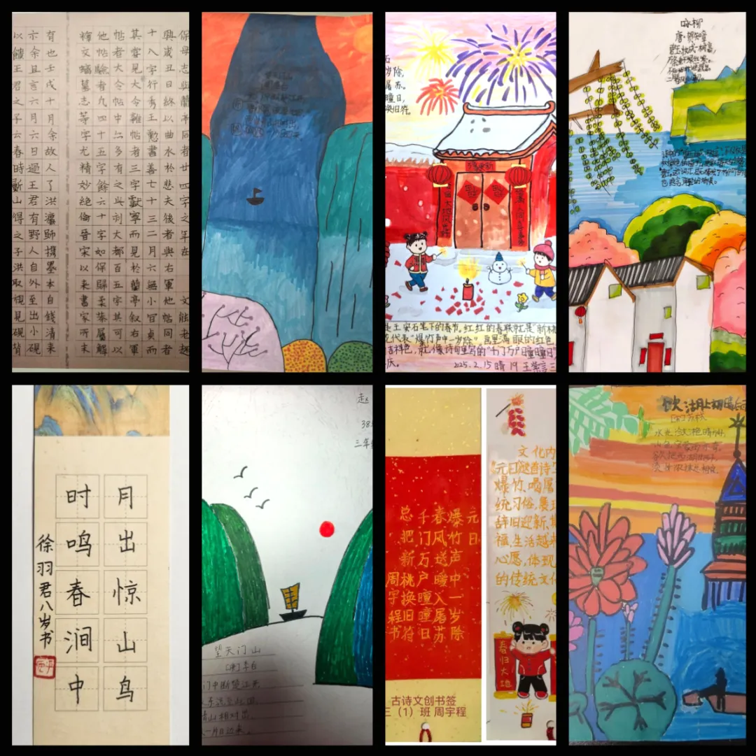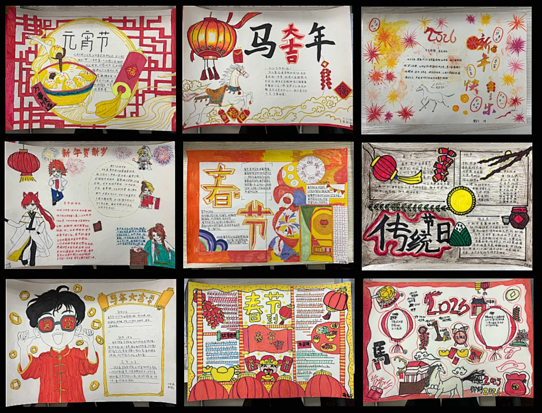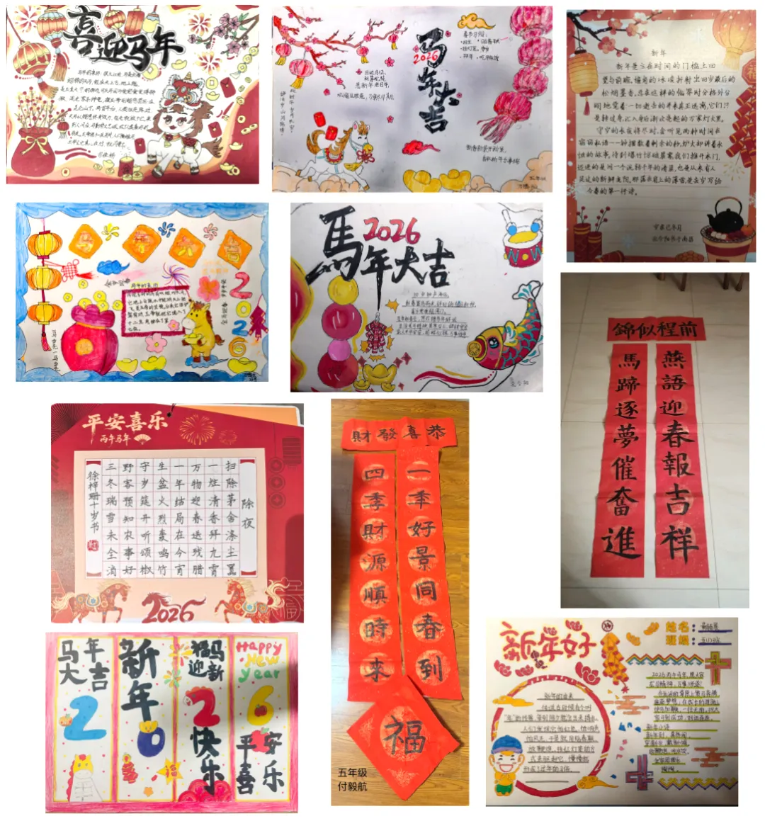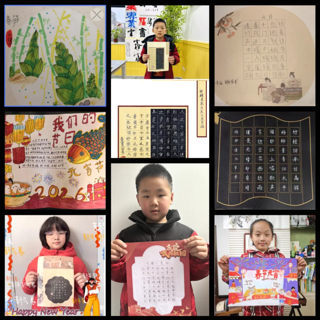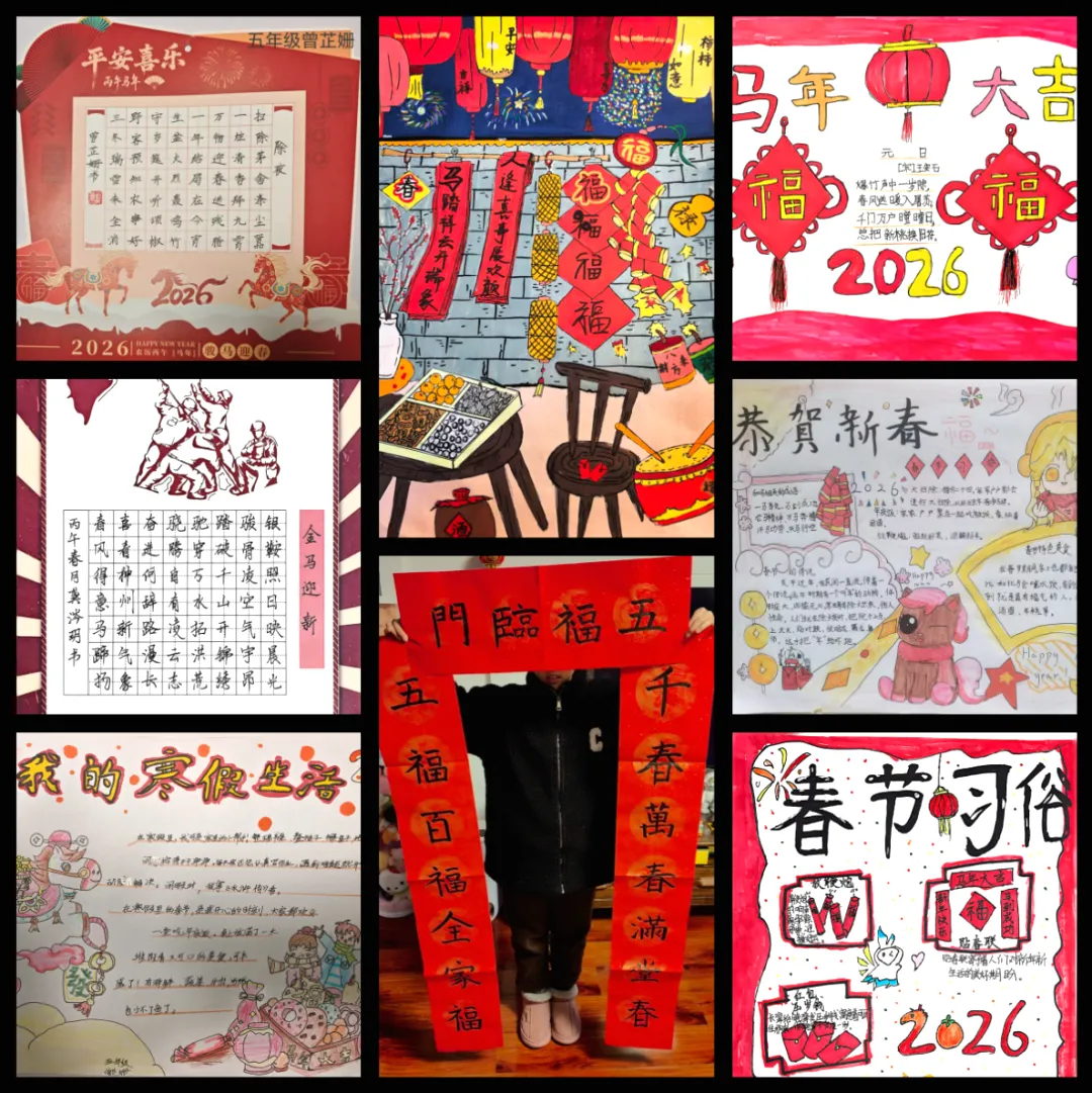 同学们以笔墨定格假期美好,将假期生活与文化创作相结合,制作年味十足的春节小报、书写工整雅致的书法作品,绘制民俗图画、裁剪传统手工,还把日常见闻与生活感悟凝于笔尖,认真撰写假期日记,每一份创作都藏着对生活的热爱、对文字的用心,在动手创作中提升审美与表达能力。