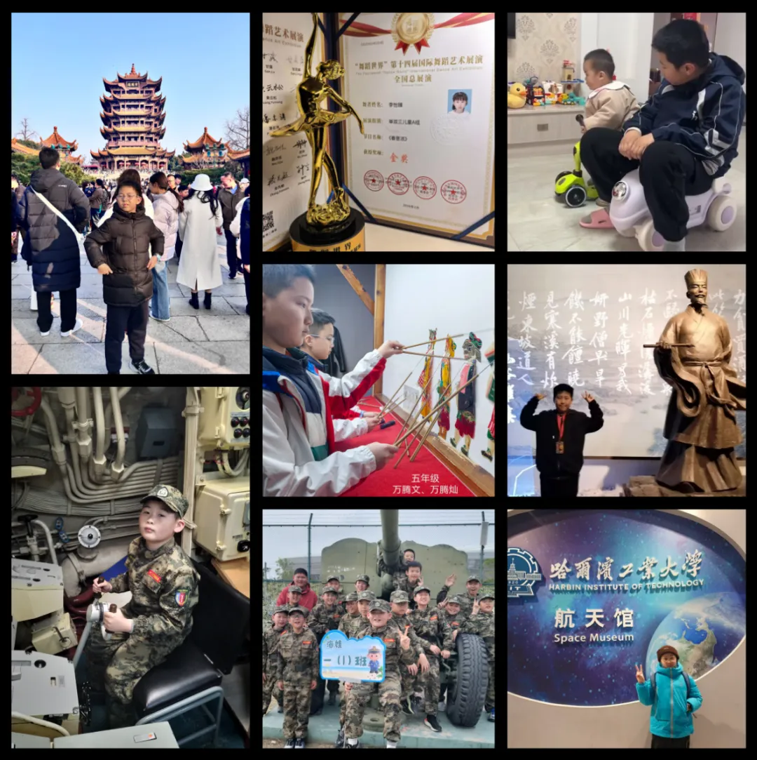 同学们各展语言风采,开展中英文口才表演、吟诵经典诗词、讲述趣味故事,用清脆童声传递美好;同时解锁多元体验,参与舞蹈比赛、演绎皮影戏、登上春晚舞台,在表达与展示中提升能力、收获自信。除此之外,同学们还解锁魔方技能,走进国防冬令营、参观名校,主动陪伴长辈、照料弟妹,在多元体验中传递温暖与善意。