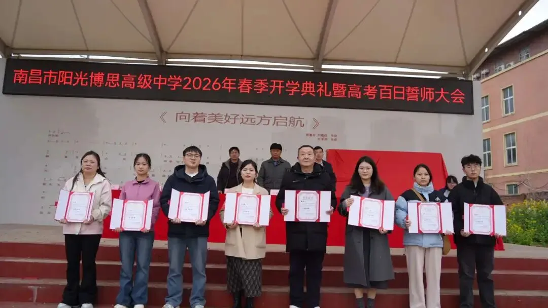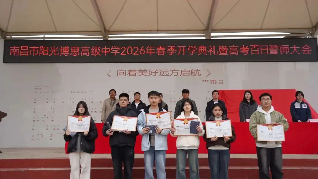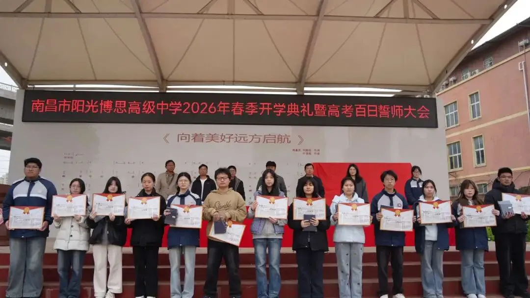 春启新征程,逐梦远方;百日砺剑,必创辉煌。此次大会不仅是一次表彰先进、鼓舞士气的总结会,更是一次激发潜能、冲刺高考的誓师会。希望高一高二的同学们以高三学长学姐为榜样,夯实基础;祝愿高三学子将誓言化为行动,在2026年的高考中乘风破浪,金榜题名,共同书写南昌市阳光博思高级中学的新篇章!