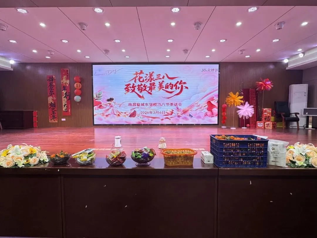 阳春三月,暖意融融。为庆祝第116个“三八”国际妇女节,丰富学校女教职工的精神文化生活,营造温馨和谐、积极向上的节日氛围,2026年3月6日下午,由南昌县城东学校工会精心策划组织的“悦己栖心,茶话温情”主题庆祝活动在学术报告厅温馨举行。全校数十名女教职工暂离繁忙的教学工作,共赴一场属于自己的春日之约。