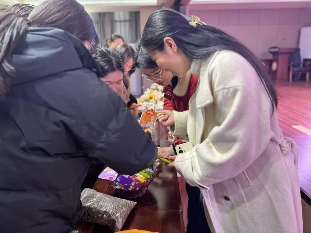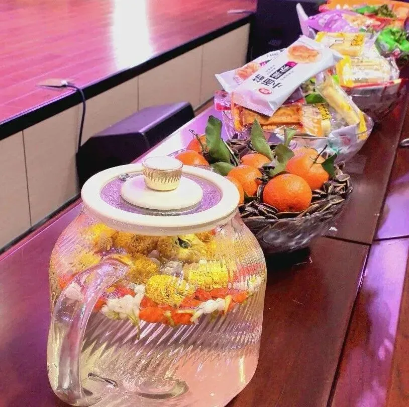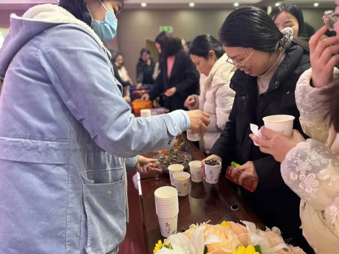 致辞结束后,备受期待的“温馨茶话”环节正式开始。活动现场准备了清香四溢的各式茗茶和丰富多样的水果、零食。女老师们围坐在一起,品香茗,尝佳果,畅谈工作与生活的点滴,分享节日的喜悦。平日里忙于工作的她们,在这一刻卸下了疲惫,敞开心扉,在茶香与果香中感受着同事间的深厚情谊和学校大家庭的温暖关怀。