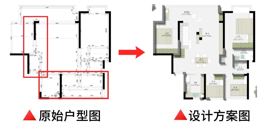 业主最大的痛点也在于此。如何让116㎡的房子,拥有160㎡的既视感?答案就藏在两个关键的“动作”里。