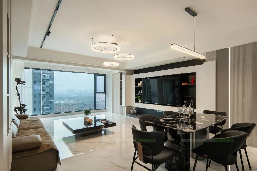 客餐厅一体,是当下很多户型的标配,但如果空间感不够,就容易显得拥挤。