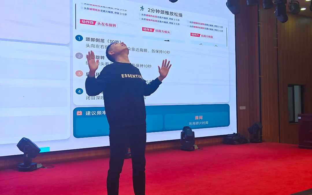 许医生现场示范了几个简单易学的护颈动作,帮助大家在日常工作中强化颈部肌肉,缓解久坐伏案带来的颈肩疲劳。此外,他还讲解了如何选择合适的枕头,做好睡眠中的颈椎修复,将实用的健康理念融入到教职工的日常生活细节中。