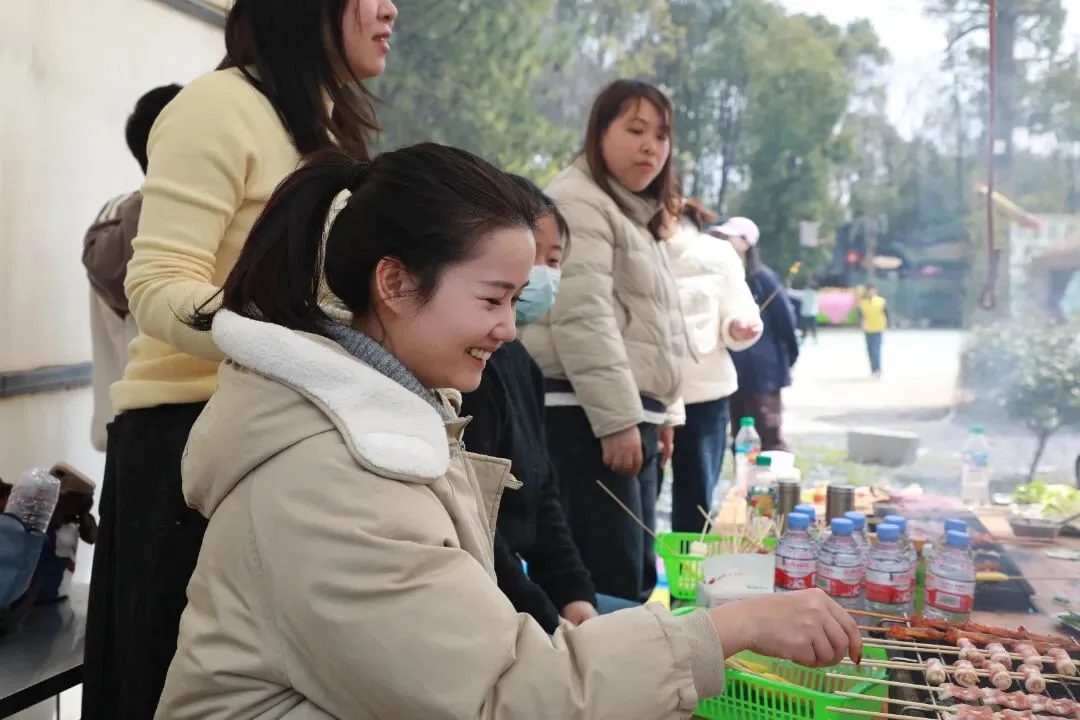 随后,大家结伴登山赏梅、参观木雕展馆、打卡红色景点,在青山绿水间感受自然之美,在人文艺术中陶冶情操。午餐过后,自助烧烤、围炉煮茶、团队协作等趣味拓展项目依次开展,现场欢声笑语不断、氛围热烈融洽。大家在互动协作中增进情谊、凝聚合力,充分展现出轨道巾帼乐观向上、团结奋进的良好风貌。