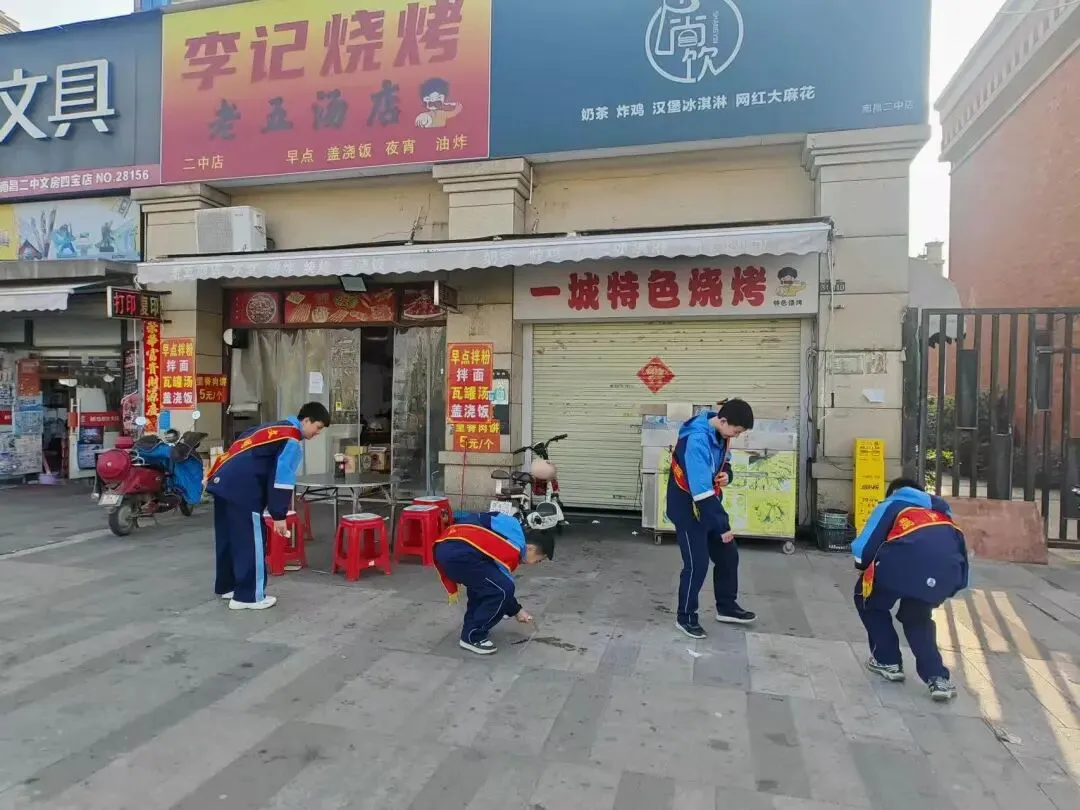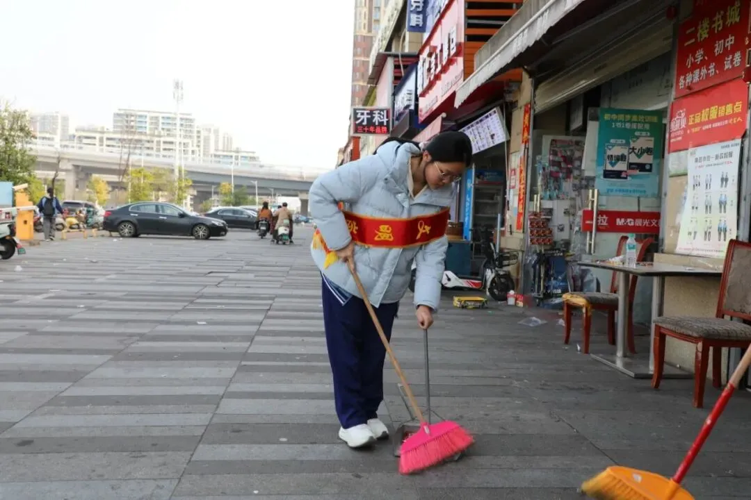临街马路与社区商铺周边,第二志愿队化身“城市美容师”。大家手持扫帚、夹子、垃圾袋,分工协作清理路面垃圾、捡拾绿化带杂物、擦拭公共设施。从墙角缝隙到人行道边角,不放过一处卫生死角。汗水浸湿额头,笑容依旧灿烂,原本杂乱的路面焕然一新,整洁的街巷成为城市文明的生动窗口。