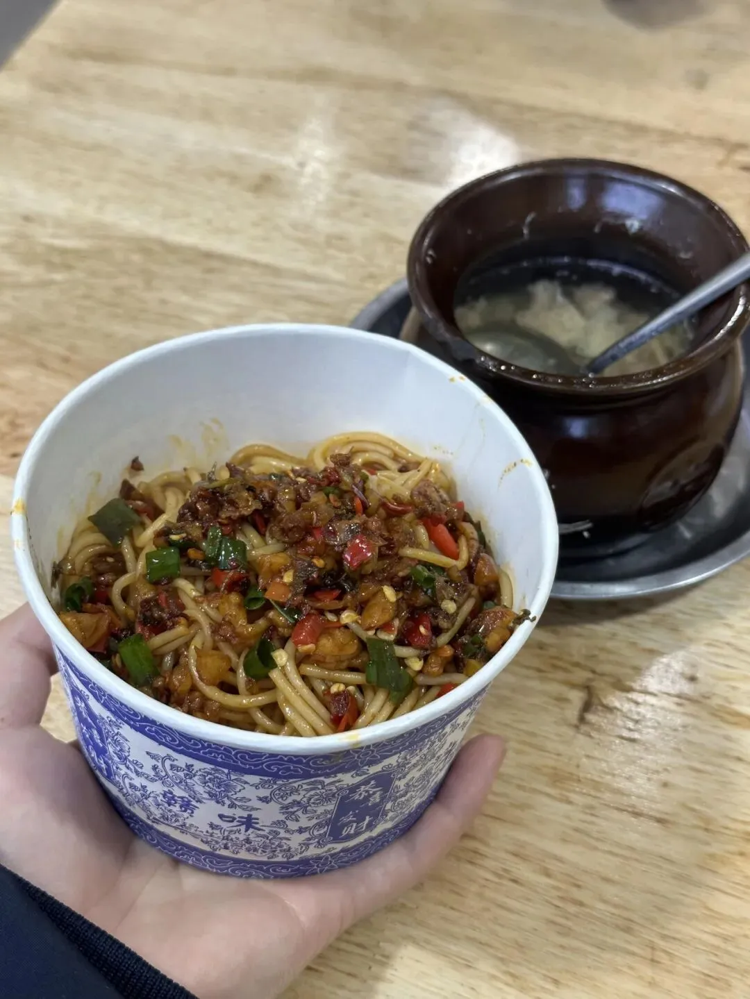结果没过五秒!辣味直接从舌尖窜到脑门啊!辣得我嘶嘶吸凉气,赶紧端起旁边的瓦罐汤猛灌一口,整个人都辣精神了,喝了两大碗汤还是辣得舌头发麻。