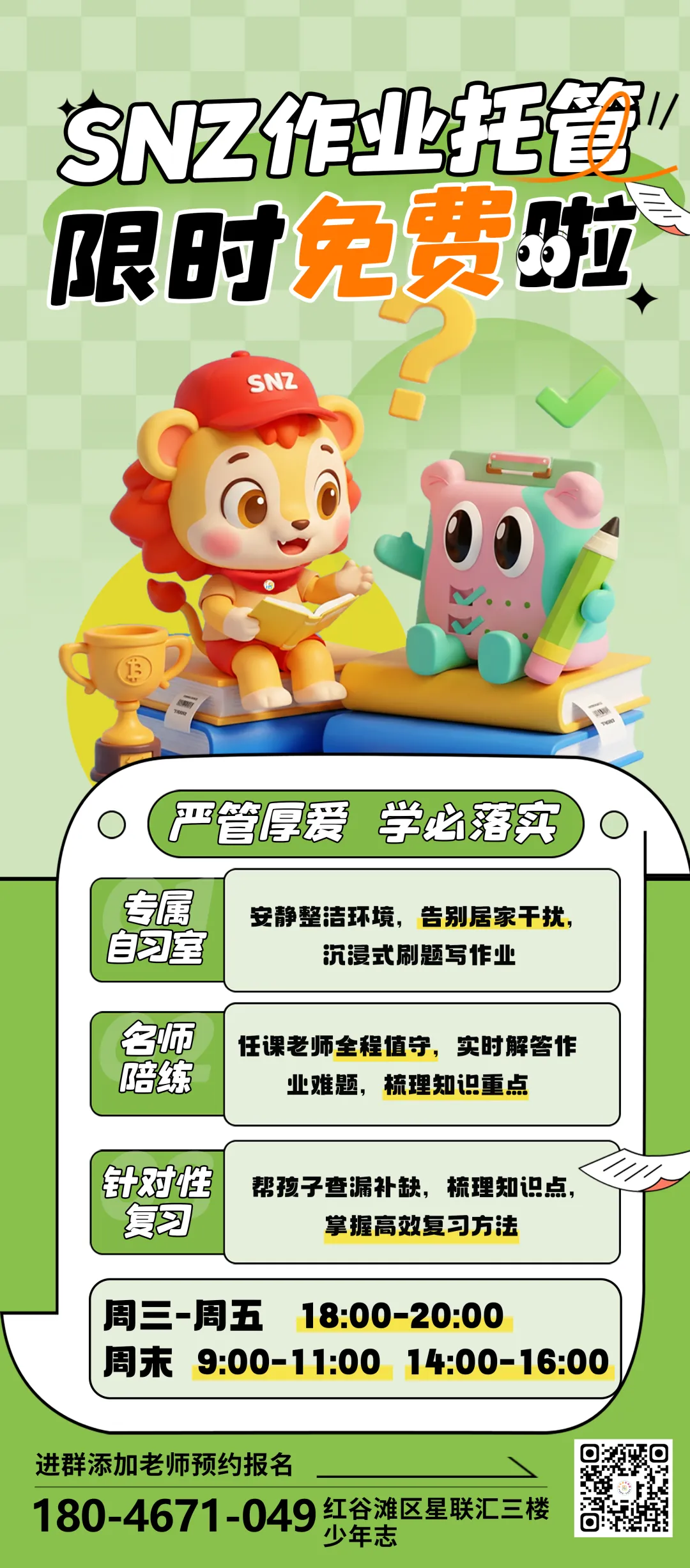 ✅ 专业老师全程辅导✅ 沉浸式氛围,高效写作业✅ 知识点查漏补缺,重点提升⏰周中: