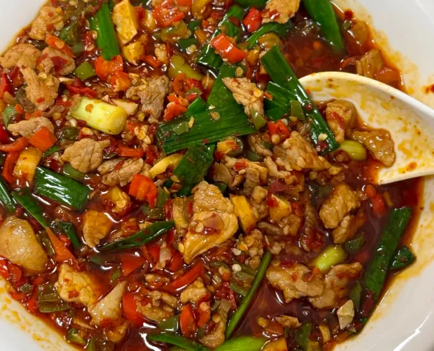 特色推荐:萍乡小炒肉这菜看着简单,其实讲究。带皮五花肉切得薄如蝉翼,在热锅里煸出油花,再把本地特有的干红椒和鲜朝天椒一并倒进去。大火猛攻,铲子翻飞,肉片吸饱了辣味,辣椒染上了肉香。一口下去,鲜、辣、香在嘴里炸开,不是那种干辣,而是带着肉汁的润辣,特别费饭。