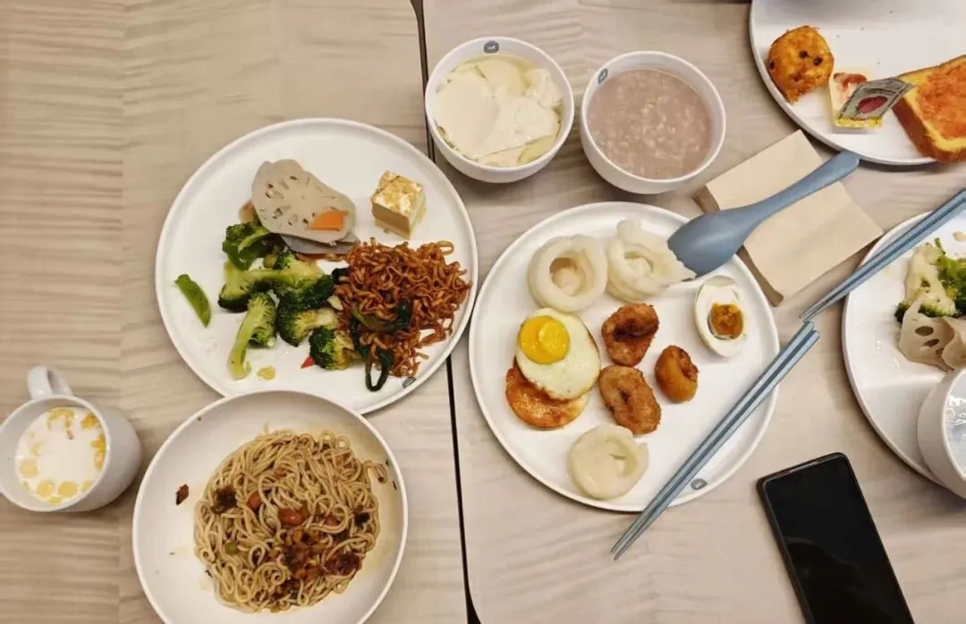 早餐依旧是旅馆提供的丰盛自助餐,但连吃两天后发现,并非所有菜品都合口味。比如煎鸡蛋口感如塑胶,白糖糕也干硬无味,想必是隔夜回锅的缘故。