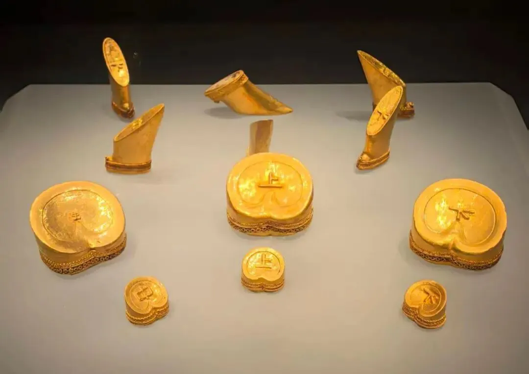金器。非常震撼!出土的478件金器包括385枚金饼、48枚马蹄金、25枚麟趾金和20块金钣。其中,金饼的纯度极高,部分专家认为是用于进贡皇帝的“酎金”,其规格和戳印反映了西汉时期黄金的冶炼工艺与度量标准。这些金器不仅数量惊人,工艺也极为精湛,其含金量普遍在99%以上,部分甚至达到99.9%,体现了当时高超的黄金提纯技术。马蹄金与麟趾金均采用花丝镶嵌等细金工艺制作而成,底部铸有“上”“中”“下”字样。其赏赐对象是诸侯王,属于仅诸侯王才拥有的珍贵纪念品,不作流通之用,因此十分罕见。