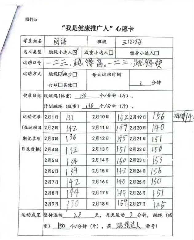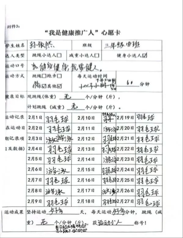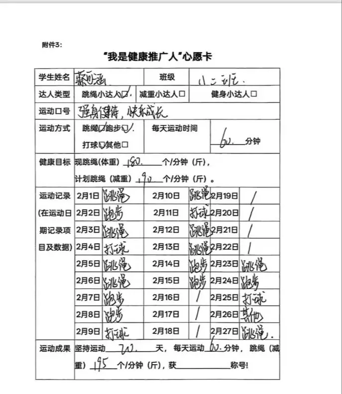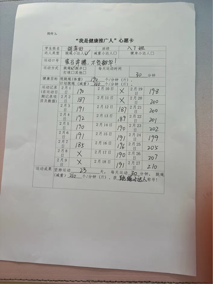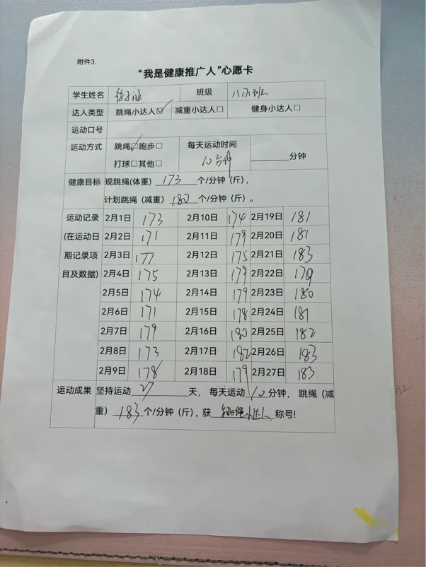 全校学子制定专属寒假运动计划,以跳绳、跑步、健身等运动践行龙马精神。一张张马年心愿卡,清晰记录运动目标与打卡成果,在汗水挥洒中强健体魄,让昂扬朝气成为寒假最美底色。