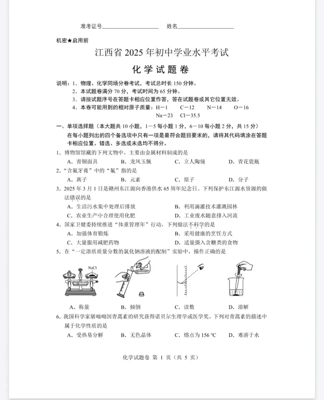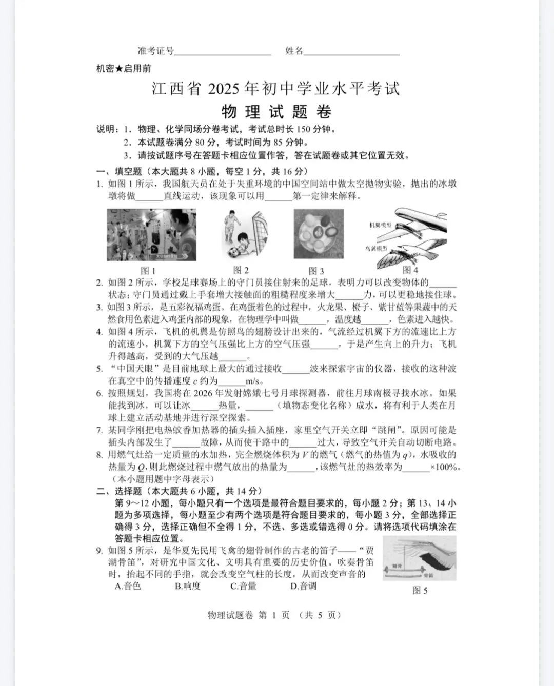 1. 2023-2025年南昌中考全科真题(语文、数学、英语、物理、化学、道德与法治、历史全涵盖)