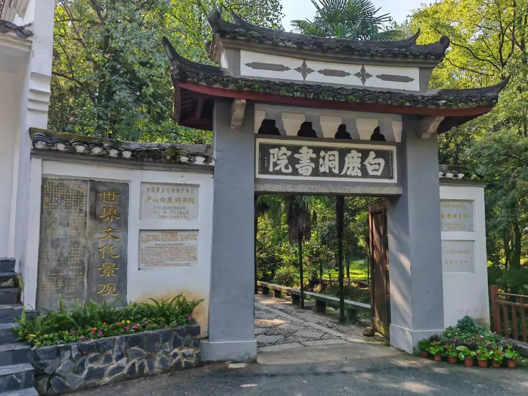 游览【白鹿洞书院】位于江西省九江市庐山五老峰南麓,是世界文化景观,享有“海内第一书院”之誉,被评为“中国四大书院之首”。始建于南唐升元年间(公元940年),是中国首间完备的书院;南唐时建成“庐山国学”(又称“白鹿国学”),为中国历史上唯一的由中央政府于京城之外设立的国学;宋代理学家朱熹出任知南康军时,重建书院,亲自讲学,确定了书院的办学规条和宗旨,并奏请赐额及御书,名声大振,成为宋末至清初数百年中国一个重要文化摇篮,是中国教育文化的重要发祥地之一。
