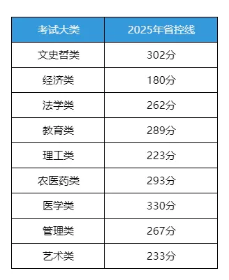所有考生录取均不得低于对应考试大类的省控线,具体如下: