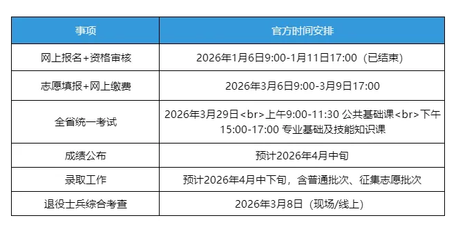 志愿批次设置:分为退役大学生士兵免试计划、其他专项计划(脱贫家庭/获奖学生)、普通计划3个录取批次,符合多批次资格的考生可同时填报对应批次志愿;