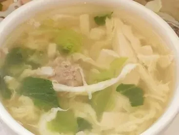 肉沫豆腐蔬菜蛋汤、香甜米饭