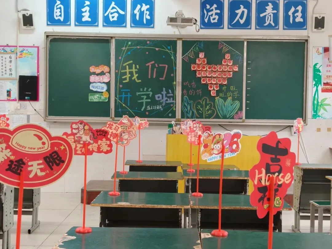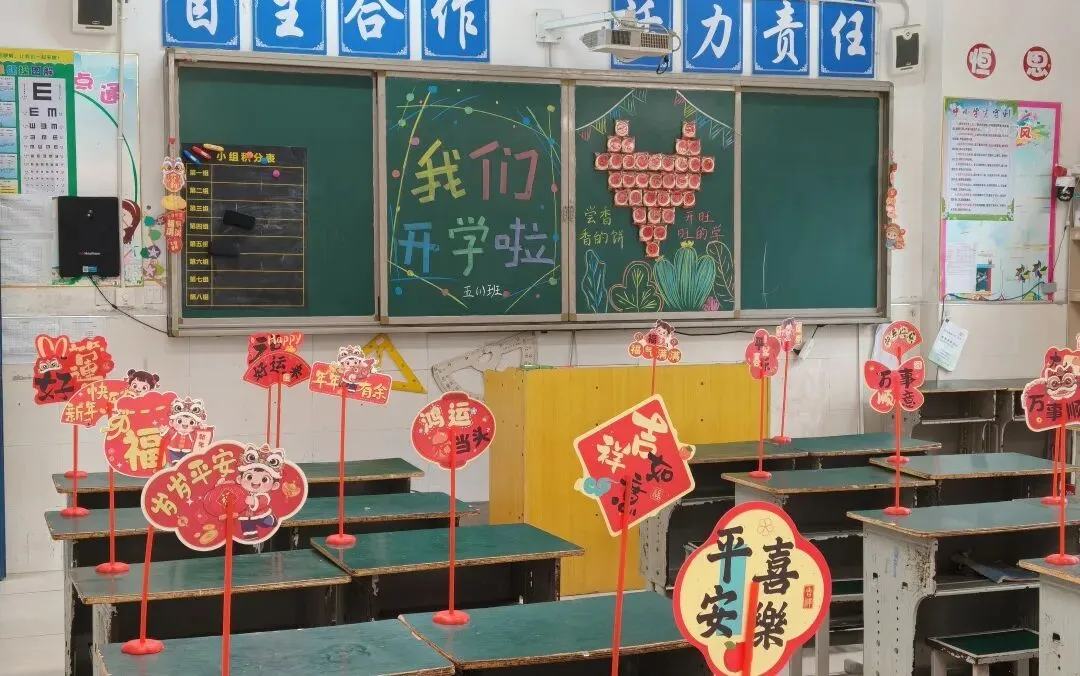 开学是久别重逢的喜悦,亦是逐梦前行的开始。为了欢迎恒昇学子荣耀归来,老师们精心布置,用心营造了温暖、温馨、充满希望的开学氛围。教室里,整洁有序的课桌、创意满满的迎新板报、暖心的新年祝福立牌、贴心的开学小礼物……处处洋溢着温馨与幸福,每一个细节都承载着老师们对孩子们新岁启封的深情祝福。