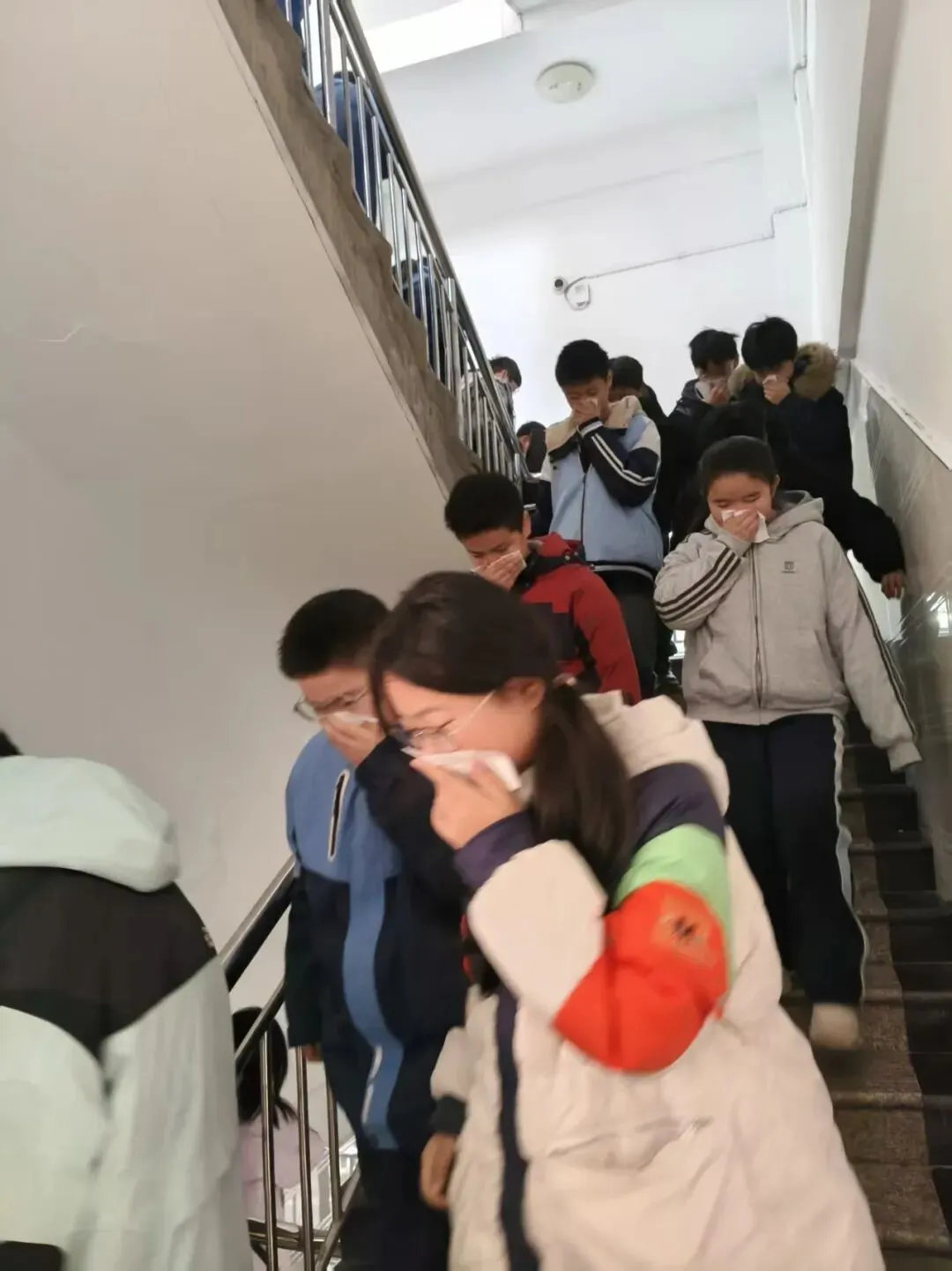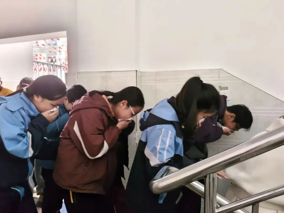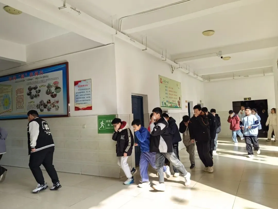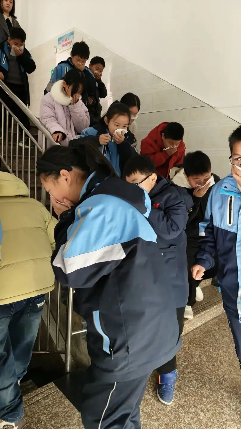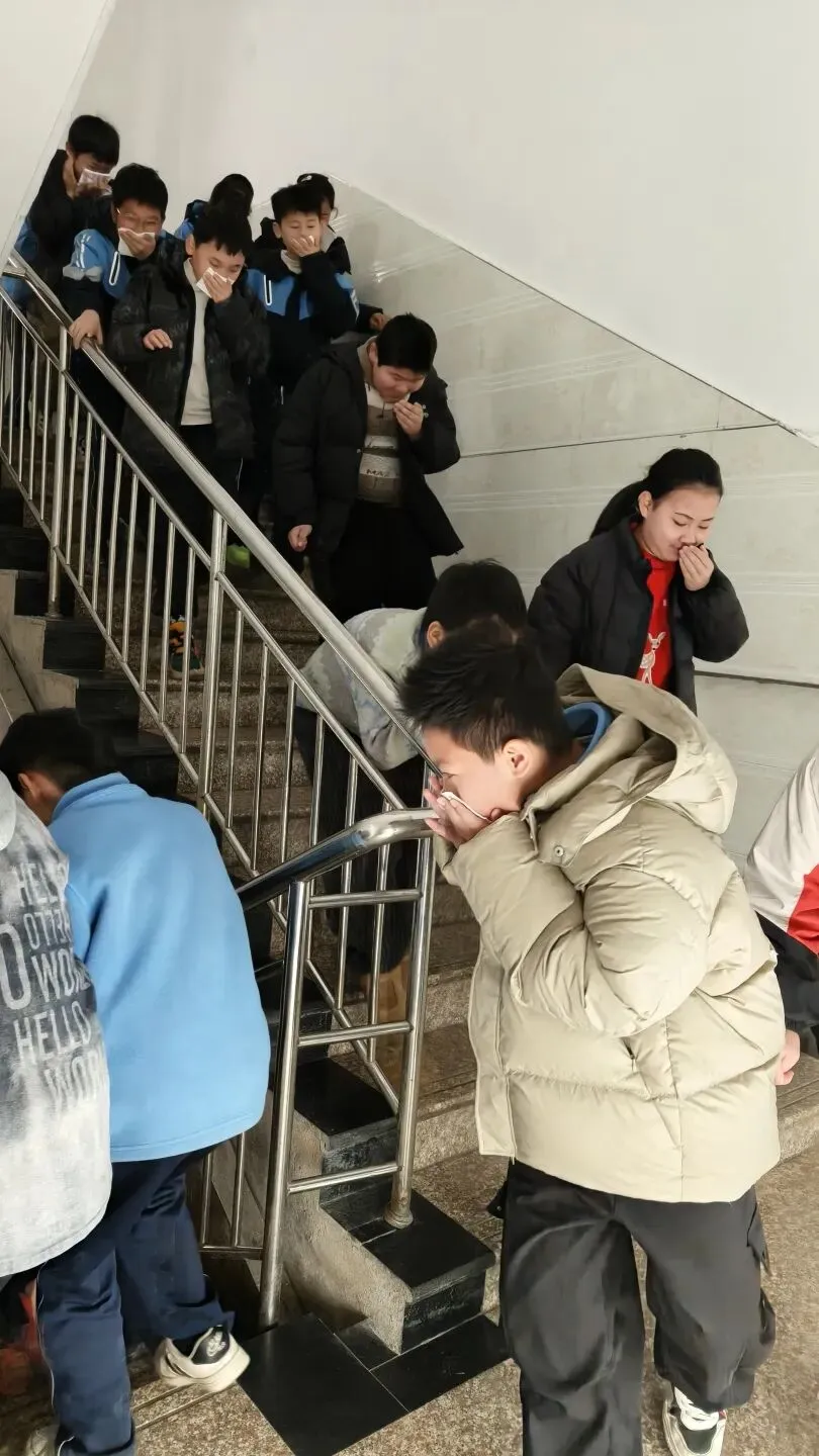 听到警报声后,各班班主任及任课老师迅速反应,立即组织学生进入应急状态。学生们在老师的指挥下,迅速捂住口鼻,弯腰低头,严格按照预先设定的疏散路线,快速、有序地从教室撤离。