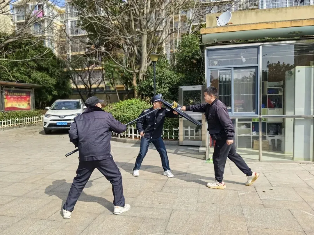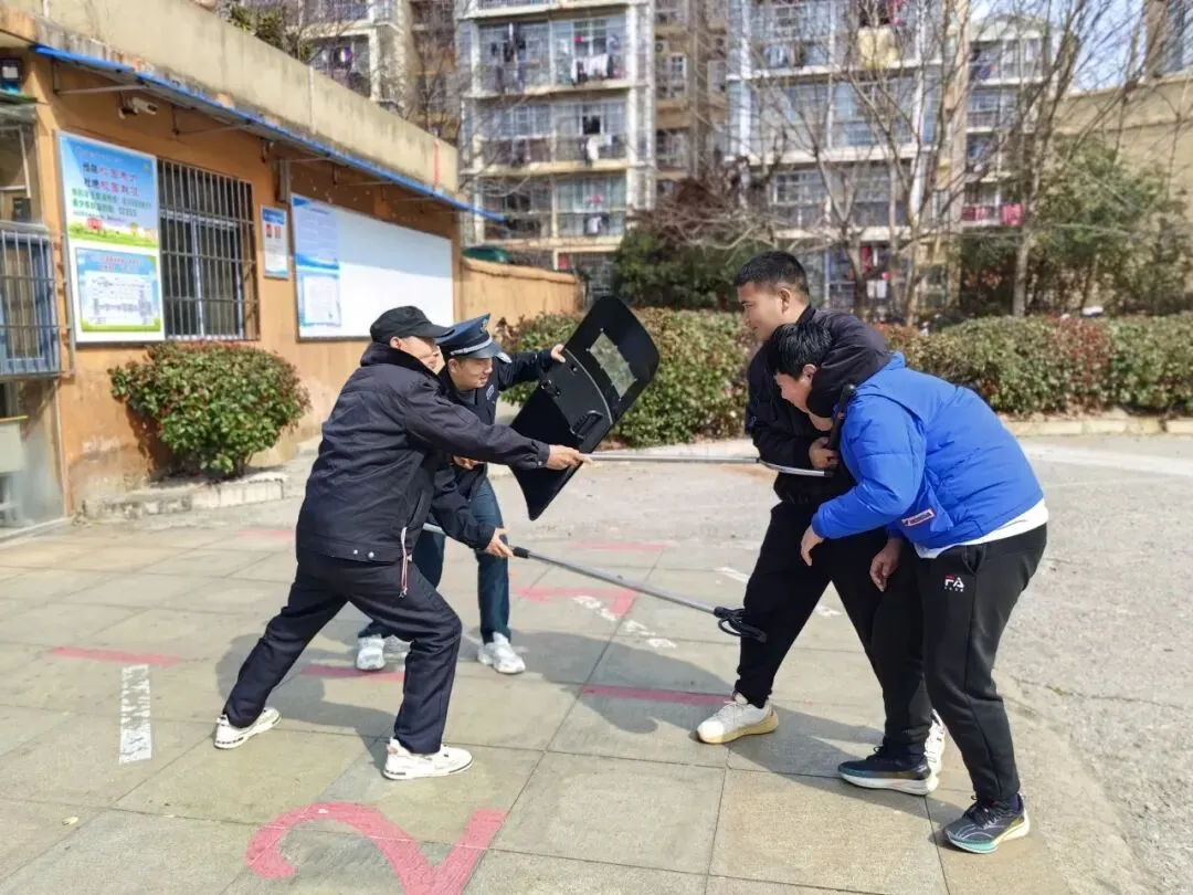 紧随其后,反恐防暴应急演练同步展开。模拟校园突发“暴恐分子闯入”场景,安保人员第一时间响应,按照预案迅速集结、果断处置,使用防暴器材有效阻拦、控制“危险人员”。